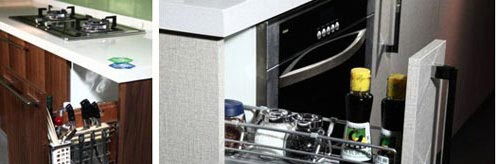 為了讓操作時更加便捷,根據(jù)灶臺的大小或主人的生活習慣,對灶臺下方做到合理分區(qū)非常重要。櫥柜中的各種調味拉籃,總能在你最想要的位置為你提供最便捷的操作,讓您的廚房生活更加的快樂。