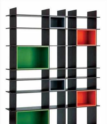 幾何書架 這個書架無疑是在向蒙德里安經(jīng)何典作品致敬,幾何切割以及大膽的配色,滿足對不同尺寸的需求,表達(dá)藝術(shù)的同時(shí)絕對符合實(shí)用主義。