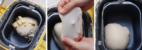 小貼士: 用面包機(jī)揉面的話,夏天請(qǐng)用冰牛奶和冰蛋,黃油也不需要提前軟化。 |