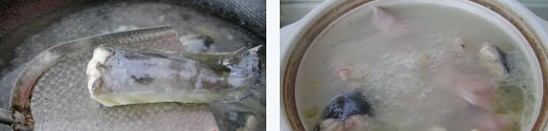 原料:鰻魚、豬腳。 做法: 1、準(zhǔn)備鰻魚一條,洗凈切塊; 2、將豬腳汆燙去血水;