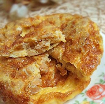 7、慢火煎至金黃色,翻其另一面煎黃即可。