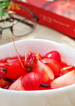 材料:蘿卜纓(小蘿卜) 調(diào)料:紅酒醋,少許橄欖油 做法: 1、將蘿卜纓洗凈,切四瓣,用紅酒醋拌上。 2、放入冰箱(冷藏)一小時,吃時拌入少許橄欖油即可。 tip:這是一道很適合女孩子的美食。蘿卜纓(小蘿卜)含有豐富的維C及水分,除了可以消食理氣外,更有潤膚養(yǎng)顏的作用。用紅酒醋浸泡完的蘿卜纓,單顏色就漂亮得叫人食欲大開。 |