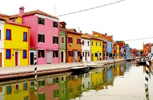 整個(gè)村莊,都好象是從各色顏料桶里提出來一樣。