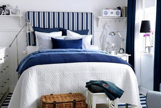 編輯點評:透氣白色、深色家具和圖案密度大的布藝會使空間顯得壓抑,特別是當(dāng)空間較小時,背景顏色最好是單一的淺色,所以臥室顏色在以藍(lán)色和白色為主色調(diào)的空間里,會讓人感覺舒適,有限的色彩增強(qiáng)了空間的銜接性,為天花板粉刷淺色可以讓它看上去更自然。 |