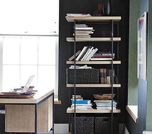 這款造型時(shí)尚的開(kāi)放式書(shū)架,前后的固定桿并不在同意平面。前端的桿子向內(nèi)收的效果,讓書(shū)架顯得更美觀,對(duì)兩側(cè)的收納物品也起到一定的阻擋作用。