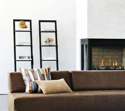 沙發(fā)不靠墻放置,背后會有一定的空間,正好利用這款層層遞進的樓梯式書架,作為書籍收納和背景墻的雙重功能。