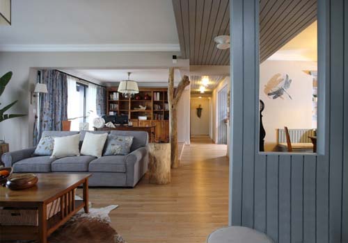 編輯點(diǎn)評(píng):客廳中這棵大樹(shù)很吸人眼球吧,兩個(gè)木樁都是主人去掏回來(lái)的,很自然很巧妙,背后就是書(shū)房,和客廳相連,功能齊全。