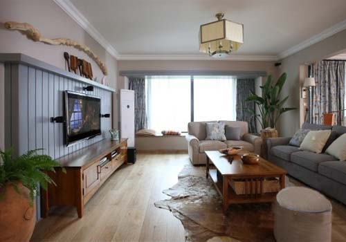 編輯點(diǎn)評(píng):這個(gè)角度看客廳的全貌,實(shí)木的茶幾,電視背景墻和電視柜,搭配淡藍(lán)色布藝沙發(fā),很干練簡(jiǎn)潔。