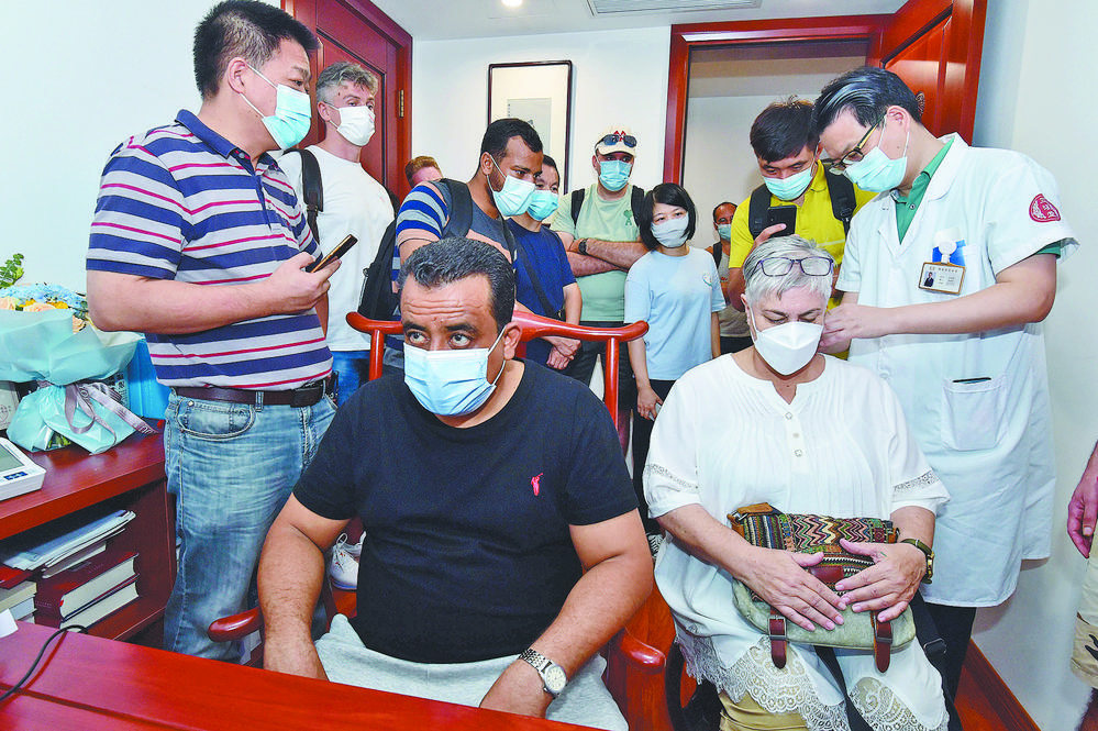 圖為國際友人們在李昌植針灸博士工作室現(xiàn)場體驗針灸療法。