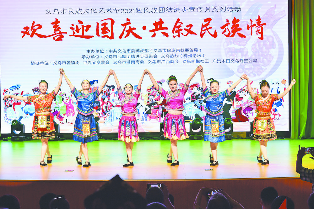 活動(dòng)在婺劇非遺表演《水袖》中拉開序幕,隨后具有濃郁民族特色的節(jié)目輪番上演。一個(gè)個(gè)精彩的節(jié)目贏得了現(xiàn)場(chǎng)觀眾的陣陣掌聲,以及云端觀眾的點(diǎn)贊評(píng)論。線上線下歡聚一堂,共享民族文化盛宴,共敘民族團(tuán)結(jié)情。 據(jù)悉,9月是我國(guó)民族團(tuán)結(jié)進(jìn)步宣傳月。市委統(tǒng)戰(zhàn)部組織開展了民族文化展、民族團(tuán)結(jié)故事會(huì)、民族團(tuán)結(jié)知識(shí)網(wǎng)絡(luò)競(jìng)答、民族文化藝術(shù)節(jié)等系列宣傳教育活動(dòng),共吸引了125.35萬(wàn)人次在線參與,充分展現(xiàn)了各民族同胞在義烏美好生活,像石榴籽一樣團(tuán)結(jié)在黨的周圍的生動(dòng)畫面。  |