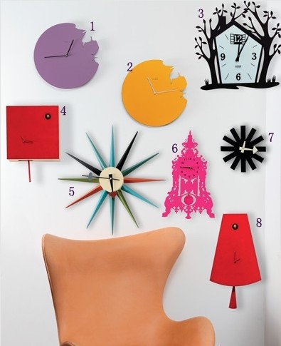 多塊掛表放在一起提亮了墻面,也顯得個(gè)性十足。 墻面素雅就掛上一塊色彩鮮艷的提亮;墻面多彩就用造型簡單的營造酷感,如果單掛一塊還不夠過癮的話,幾塊掛在一起更顯得個(gè)性十足。 1、2:殘缺的邊緣其實(shí)是設(shè)計(jì)師別出心裁的設(shè)計(jì),是兩只蝴蝶飛走的形狀。Crossover跨界