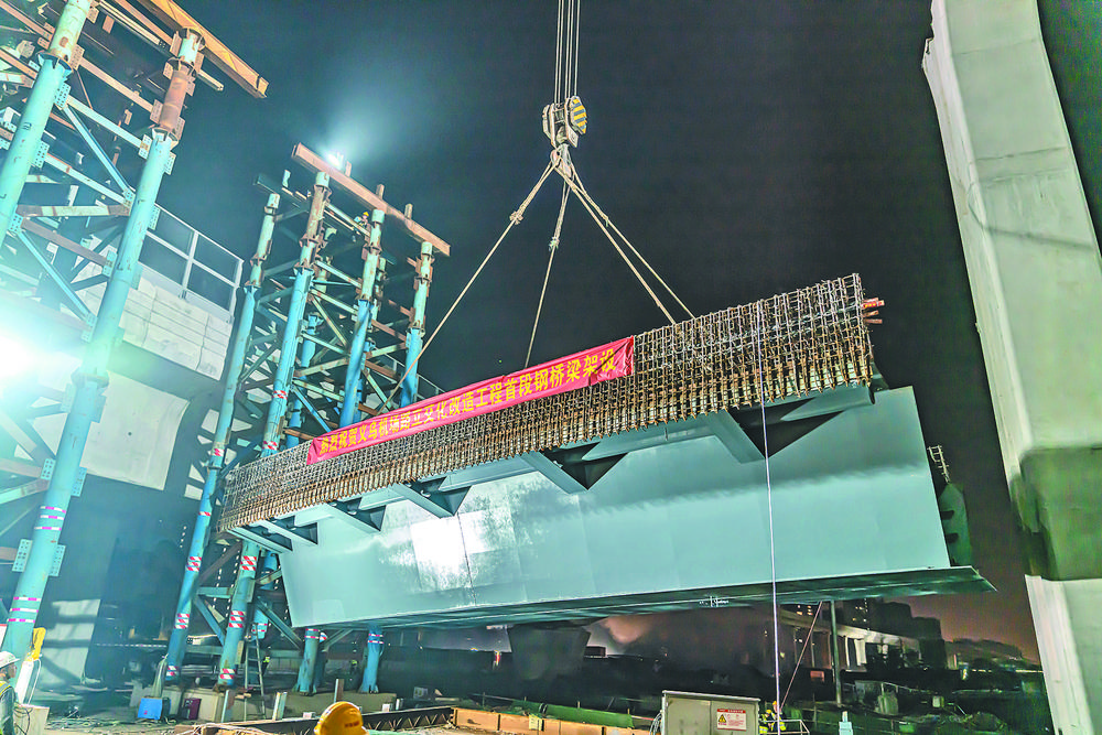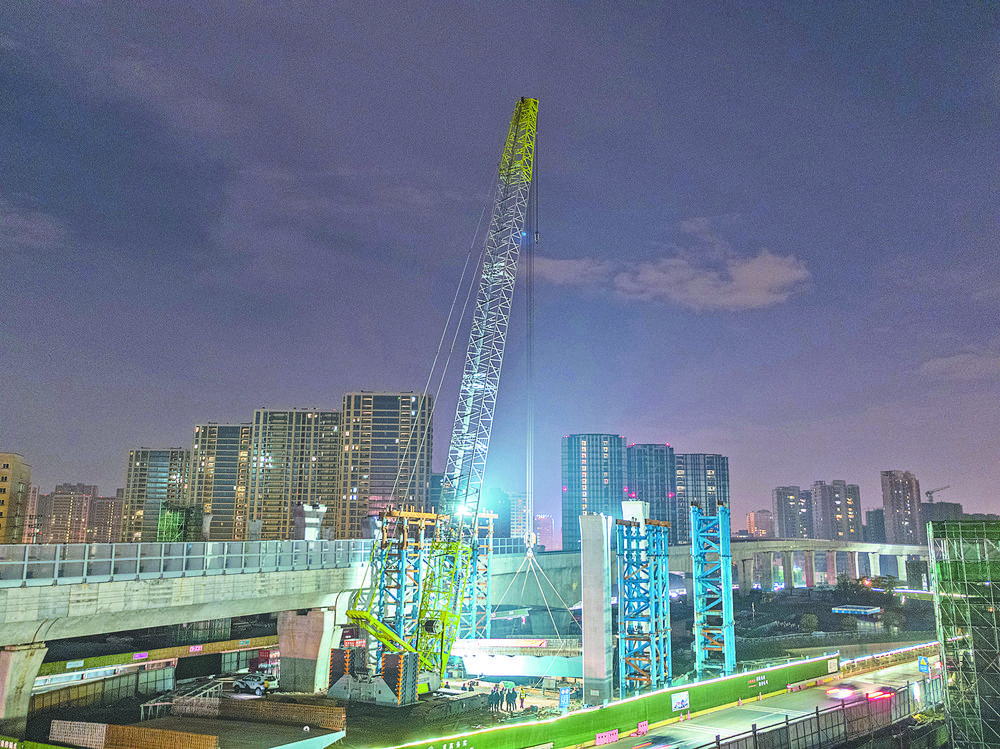 11月20日凌晨3時,機場路二階段首段鋼箱梁架設(shè)順利完成,標志著機場路立交化改造工程取得重要進展。 分秒必爭,演繹“速度與激情” 11月19日晚11時20分,工程一線人員精心核算場地承載力、起重機荷載性能、鋼絲繩及卡環(huán)受力狀況后,開展吊裝作業(yè)預演。施工現(xiàn)場多角度“數(shù)智化”實時把控,安全組對現(xiàn)場施工人員及作業(yè)隊伍進行細致交底,明確質(zhì)量、安全及文明施工具體要求。 午夜12時,隨著現(xiàn)場發(fā)出“落梁”指令,兩片重量50噸的鋼箱梁被安全平穩(wěn)地安放在跨輕軌高架橋11-12號、24-25號墩柱之間,整個吊裝過程銜接有序、一氣呵成,“工、料、機、法、環(huán)”全方面實現(xiàn)精確管控。 20日凌晨3時,兩片鋼箱梁順利完成架設(shè)。凌晨4時,輕軌恢復正常試運行。整個過程原計劃用時2個晚上,實際僅用時5小時。至此,在金華軌道公司、交警大隊等相關(guān)部門的大力支持下,圓滿完成機場路首段鋼橋梁架設(shè),機場路與國貿(mào)大道互通區(qū)正式由線下施工轉(zhuǎn)為線上線下同步施工。 攻堅克難,彰顯“責任與擔當” 機場路立交化改造工程作為市重點工程,是中心城區(qū)重要的橫向快速聯(lián)系道路,對完善我市快速路網(wǎng)體系建設(shè)、加快核心城區(qū)改造、推動城市有機更新具有重要意義。 為搶抓輕軌試運營前施工黃金“窗口期”,城投集團以黨建為統(tǒng)領(lǐng),以“百日攻堅”為抓手,建立健全重大項目專班推進、專題研究等工作機制,高質(zhì)高效推動項目建設(shè)。集團班子領(lǐng)導多次深入一線開展“三服務(wù)”,現(xiàn)場協(xié)調(diào)解決項目推進中的難點堵點,并對疫情防控、安全生產(chǎn)等工作進行部署。 施工組織協(xié)調(diào)難度大,安全風險高,是機場路立交化改造工程二階段建設(shè)的難點之一。在首段鋼箱梁架設(shè)過程中,更是遇到了梁體體積大、重量大,滑移軌跡復雜、難度高,運梁工作面窄小等問題。全員上下擰成一股繩,大力弘揚實干精神和工匠精神,把創(chuàng)先爭優(yōu)、爭創(chuàng)一流的意識轉(zhuǎn)化為推動項目取得新成效的強大動力,晝夜奮戰(zhàn)搶工期,日夜兼程趕進度,最終僅用不到一個晚上的時間,便順利完成了“首段鋼箱梁架設(shè)”這一重要節(jié)點,為項目建設(shè)按下“快進鍵”。 目前,機場路立交化改造工程二階段橋梁下部結(jié)構(gòu)完成25%,樓店側(cè)管廊完成71%,國貿(mào)大道A3、B4地下通道完成20%,預計年前完成機場路國貿(mào)大道進城方向右轉(zhuǎn)匝道結(jié)構(gòu)施工;三階段一標完成51%,二標完成27.8%,三標完成30.9%,預計年前完成車站路橋通車、二期交通(工人路)導改等。 后續(xù),城投集團將全力攻堅克難關(guān)、精益求精保質(zhì)量,加快推進項目建設(shè),確保高質(zhì)高效完成年度目標任務(wù),將其打造成為展示我市“重要窗口”建設(shè)成果的鮮明標志,讓城市“主動脈”更加暢通。 機場路立交化改造工程概算總投資約66.9億元,全長12.5公里。整體分三個階段實施,其中一階段北起G60杭金街高速出口,南至雪峰路(G60杭金街高速出口-雪峰路),全長約6.55公里;二階段起點位于雪峰路,止于國貿(mào)大道,全長約1.98公里;三階段北起國貿(mào)大道,南至環(huán)城南路,全長約3.55公里。  |