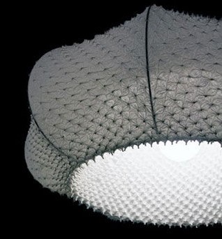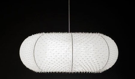 設(shè)計(jì)師Hiroyuki將布和紙料經(jīng)過(guò)特殊處理,制成了這種藝術(shù)感極強(qiáng)的日式燈罩,通透且典雅。