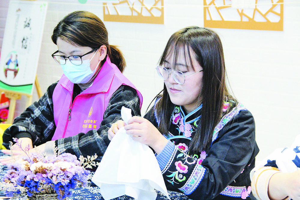 在現(xiàn)場(chǎng),指導(dǎo)老師為大家講解了扎染工藝基本知識(shí)、扎染特點(diǎn)和制作技巧等。參與者發(fā)揮各自想象力,躍躍欲試,踴躍動(dòng)手體驗(yàn),一幅幅精美扎染作品在一雙雙巧手下逐漸成型,大家將自己的作品展示出來,并互相探討,現(xiàn)場(chǎng)氣氛和諧溫馨。 少數(shù)民族婦女還給大家詳細(xì)介紹了其民族婦女服飾、特長等,增進(jìn)了轄區(qū)各民族女同胞之間的交流與交往。 |