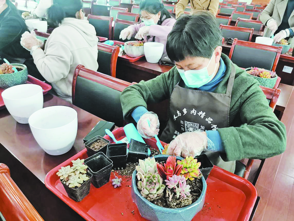 園藝?yán)蠋熢敿?xì)介紹了多肉植物的具體栽培方法,并為大家詳細(xì)示范了種植步驟。接著,大家戴上手套,在工作人員指導(dǎo)下學(xué)起了多肉栽培技巧。挑選品種、移植花盆、往盆里添加泥土、把多肉植入泥土……大家忙忙碌碌,互相探討學(xué)習(xí),表達(dá)各自對(duì)多肉植物的喜愛(ài)之情。不一會(huì)兒,一盆盆充滿生機(jī)的多肉盆栽展現(xiàn)在眼前,每個(gè)人臉上都露出滿意的笑容。 多肉綠植既能美化居室環(huán)境,又能凈化空氣。這次活動(dòng)中,大家不僅學(xué)到了多肉盆栽種植知識(shí),還提高了動(dòng)手能力,在這個(gè)屬于她們的節(jié)日里,收獲了更多美好。 |