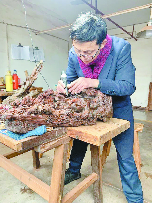 百年殘木隨飄零,不愿沉淪寂寞生,一朝恰逢知音主,幾弄修琢巧形容。3月26日,記者來到蘇溪鎮(zhèn)至尊寶紅木家具有限公司,只見工廠門口堆滿了形態(tài)不一的木頭。和室外不同,上千平方米的展廳內(nèi)擺滿了各類雕刻工藝品,花、鳥、人物、神像、動物等木雕成品,空氣中彌漫著一股清新的木香味!拔衣劜坏竭@些味道,因為半輩子都跟它們‘打交道’!闭趧(chuàng)作木雕作品的樓誠龍笑著說道。 樓誠龍是至尊寶紅木家具有限公司董事長,他制作的木雕作品因為造型精致逼真而遠近聞名,注重傳統(tǒng),卻又不拘泥于傳統(tǒng),能將傳統(tǒng)文化、木雕技藝和現(xiàn)代家具很好地融為一體,其設(shè)計創(chuàng)作的作品“端正”不失靈氣,生產(chǎn)的家具“多樣”不乏穩(wěn)重,其個人作品曾多次在省內(nèi)外工藝美術(shù)精品展、賽上展出,榮獲獎項擺滿了整個創(chuàng)作室。 對于樓誠龍,業(yè)內(nèi)人士的評價有著驚人的一致:做事嚴謹、專注、好琢磨,注重細節(jié)且對自己廠里的產(chǎn)品“吹毛求疵”。有些人對此不太理解:這種“工匠精神”為什么會出現(xiàn)在一個企業(yè)老板的身上呢? 拜師學藝傳承“工匠精神” 木雕是一門古老的藝術(shù),雕刻技藝需一代代傳承。樓誠龍出生于木雕世家,父親、堂哥都是民間雕刻藝人,木頭加工的雕刻聲伴隨了他的孩童時期。因此,樓誠龍從小就對木頭雕刻有著特殊的情感,他本人還喜歡看歷史典故書籍和繪畫,這為日后的創(chuàng)作奠定了基礎(chǔ)。16歲時,他師從木雕名家駱金滿學習木雕工藝,在三年學徒期間勤勞踏實、學習認真,很愿意花心思鉆研,因而得到了師傅的喜愛和盡心栽培。 1985年,出師后的樓誠龍先在義烏本地上門做木雕,隨后前往佛山、廣州、順德等地,一邊工作一邊研究、吸取各地雕刻流派的特長和精華,繼續(xù)打磨自己的手藝。在不懈的努力下,不管是花鳥還是山水,樓誠龍都能刻畫的自然舒展、栩栩如生,尤其是人物雕刻,從人物表情到衣服紋路,每一處無不神形兼?zhèn),展現(xiàn)出極為高超的雕刻技藝。 經(jīng)過多年的打拼,樓誠龍回到了家鄉(xiāng)義烏,開辦起自己的工廠,并于1998年拿到了至尊寶品牌商標,設(shè)計和制作最適合義烏人的家具和裝飾。而作為工匠型老板,樓誠龍在經(jīng)營至尊寶這個紅木品牌時也一直保有一顆“匠人”之心:不求企業(yè)規(guī)模做到多大,但求制作工藝達到極致! “客戶告訴我想雕刻的內(nèi)容,我一個人就可以完成創(chuàng)作到雕刻的全過程!倍自诎准埳系臉钦\龍手握畫筆,指著長三米寬兩米的繪畫說,客戶要求根據(jù)唐代詩人、畫家王維的一首詩來雕刻作品,“我已經(jīng)創(chuàng)作大半,這是一幅背景設(shè)定在唐代的山水畫,里面有人物、飛鳥、山水,兩三天就能完成! 目光所及,縷縷情懷,只身端坐雅靜的創(chuàng)作室,樓誠龍就是那種能夠與木頭用心溝通交流的人,只要看到名貴木材,雙手觸及木料,通體便本能地生發(fā)一種難耐的沖動,無言對視,由不得心緒翻飛,浮想聯(lián)翩?簥^間,一款形制優(yōu)美,雕刻精到的紅木古家具作品,便了然于心,成竹在胸了。他認為,雕好一樣作品,最重要的是了解他們的神態(tài)、動態(tài)、靜態(tài),這就非?简炓粋雕刻師的功底。 做傳承者也要做創(chuàng)新者 樓誠龍創(chuàng)作室里,無論是雕龍刻鳳的浮雕,還是鏤空的透雕,無不栩栩如生、惟妙惟肖,透著靈秀!傲x烏的木雕在手法上力求純手工,講究技法,追求意境!睒钦\龍一邊說一邊做起了示范。只見他揮動手臂,飛舞刻刀,在紛飛的木屑中,木料上的圖案逐漸變得清晰……一塊屏風上的飛鳥雛形立體顯現(xiàn)。 “三顧茅廬、三英戰(zhàn)呂布、梁山108將、群仙祝壽;朱丹溪、宗澤、戚繼光、駱賓王;雞毛換糖、‘一帶一路’、‘義新歐’等!睒钦\龍的木雕題材之廣泛,這是因為木雕創(chuàng)作,看得見的東西要做,看不見的東西也要做。因此,他除了創(chuàng)作人物、花鳥、山水等用眼睛可以直觀感受的事物外,還特別敢嘗試現(xiàn)代元素,大膽探索不同的創(chuàng)作方法和理念。 木雕是雕刀對木頭的喚醒,也是雕刀對木頭賦予的生命力。樓誠龍的工作臺上擺放著不少工具,一問才知這些工具刀多達上百種,這里的僅是一小部分。“為了照顧到每一個細節(jié),光是用于雕刻的工具刀就有上百件!睒钦\龍說,刀具分為圓刀、平刀、三角刀等,用于鏤、刻、鎪、鑿等工藝。 創(chuàng)作一份作品需要耗費不少時間,短則一兩月,長則一年半載。創(chuàng)作一份作品之前,樓誠龍要做好十足的準備,沒有百分百的信心,他不會輕易下刀。“木雕跟做人一樣,要謹慎,如果出錯了,木頭就變廢料了。”樓誠龍說。 作為一個擁有中國傳統(tǒng)工藝美術(shù)大師、浙江省工藝美術(shù)大師、義烏市首席技師等稱號的木雕大師,樓誠龍對自家出產(chǎn)的紅木家具質(zhì)量要求極為嚴格:不管是自己還是手下的師傅、工人,制作的每件家具都必須真材實料、做工精細,絕不偷工減料、敷衍了事。由于對工人技能和工藝質(zhì)量的極高要求,至尊寶的企業(yè)規(guī)模一直不大,也無法批量生產(chǎn),但樓誠龍仍然堅持走“小而精”的經(jīng)營方式。 “作為一名工匠,我追求的是精湛的工藝;而做人做事,我覺得要誠心誠意,不能騙人。做生意嘛,該賺的錢就賺,不該賺的錢就不