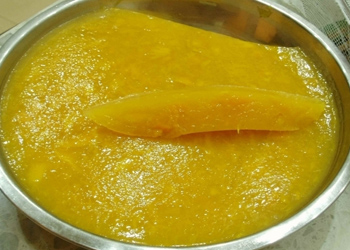晶瑩剔透的大菜蛋是人見人愛的香港小食,尢其在夏天,吃吃冰涼的大菜糕﹐由喉嚨涼到入心﹐才叫人真正舒暢。 原料: 大菜15克,水750毫升,糖100克,雞蛋3只,塑料蛋殼數(shù)個(gè)。 做法: 1、大菜洗凈剪碎。 用沸水煮溶大菜時(shí),邊攪拌邊加入糖。 2、將雞蛋打勻后倒入大菜溶液中成蛋花。待大菜溶液稍冷卻后,用塑料蛋殼盛載大菜溶液并置于雪柜中冷凍至凝結(jié)。 3、數(shù)小時(shí)后取出剝?nèi)ニ芰系皻ぜ纯墒秤谩?/P> |