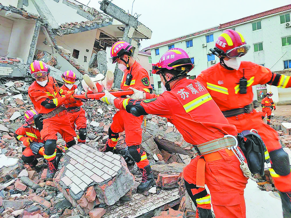 當(dāng)天上午9時(shí)30分,演練正式開始。演練假設(shè)蘇溪鎮(zhèn)發(fā)生七級地震,震源中心為徐豐村。地震造成徐豐村樓房大面積倒塌,多人失蹤,嚴(yán)重危害到人民群眾的生命、財(cái)產(chǎn)安全,情況十分危急。徐豐村兩委、江南共建委立即逐級上報(bào)險(xiǎn)情,蘇溪鎮(zhèn)迅速進(jìn)行震情研判,啟動(dòng)應(yīng)急預(yù)案,成立應(yīng)急指揮部。公安、消防、民兵、電力、醫(yī)療等多方力量快速集結(jié),迎風(fēng)冒雨,緊急救援,圓滿完成營地搭建、應(yīng)急通信保障、搜索技術(shù)及人員營救等7個(gè)演練科目。  |