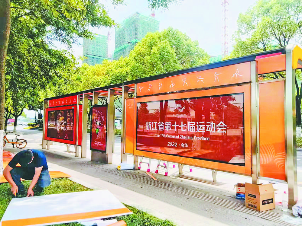 工作人員正在為公交候車亭換“新裝” “浙江省第十七屆運動會”“韻動浙江 和美金華”……這幾日,細心的市民會發(fā)現(xiàn),在市區(qū)一些路段的公交候車亭和部分公交車的車身上,都裝飾了浙江省運會的相關(guān)元素,“喜迎省運”的氛圍愈發(fā)濃厚。記者了解到,為助力省運會順利舉辦,恒風(fēng)集團積極策劃,在城區(qū)主干道以及部分繁華區(qū)域的候車亭展示關(guān)于迎省運會的公益宣傳標語。其中,永勝小區(qū)附近的公交候車亭,還成了省運會的專屬主題候車亭,真正將主題宣傳由“點”帶“面”鋪張開來。除了公交候車亭宣傳標語外,數(shù)輛公交車的車身“披”上省運會元素,在全市主干道形成流動“風(fēng)景線”。 本次省運會公益宣傳,采用集公交車身、候車亭、小燈箱、主題候車亭等多形式、全方位的公交展示圈,讓省運會氛圍相互襯托,遙相呼應(yīng),同時,倡導(dǎo)市民綠色出行,形成全民健身的良好氛圍。 |