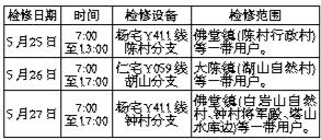 尊敬的用電客戶: 根據(jù)國網(wǎng)義烏市供電公司生產(chǎn)計劃檢修安排,定于5月25日-5月27日期間進行電力設(shè)備檢修,現(xiàn)將電力設(shè)備檢修影響客戶區(qū)域范圍列表公告如下,若遇雨天、雷暴等惡劣天氣檢修工作取消,工作期間會對正常供電造成影響,請各相關(guān)用戶諒解并做好生產(chǎn)安排,如有疑問,請咨詢電力服務(wù)電話:0579-85518551 國網(wǎng)義烏市供電公司 二〇二二年五月十七日 |