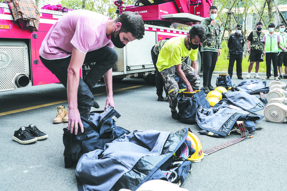 在省消防救援總隊義烏支隊消防救援人員帶領(lǐng)下,我市開展穿消防服和水帶連接等項目比賽,交流滅火技能,共建安全家園。參賽的16名國際消防志愿者分別來自也門、伊朗、敘利亞、馬里等國。