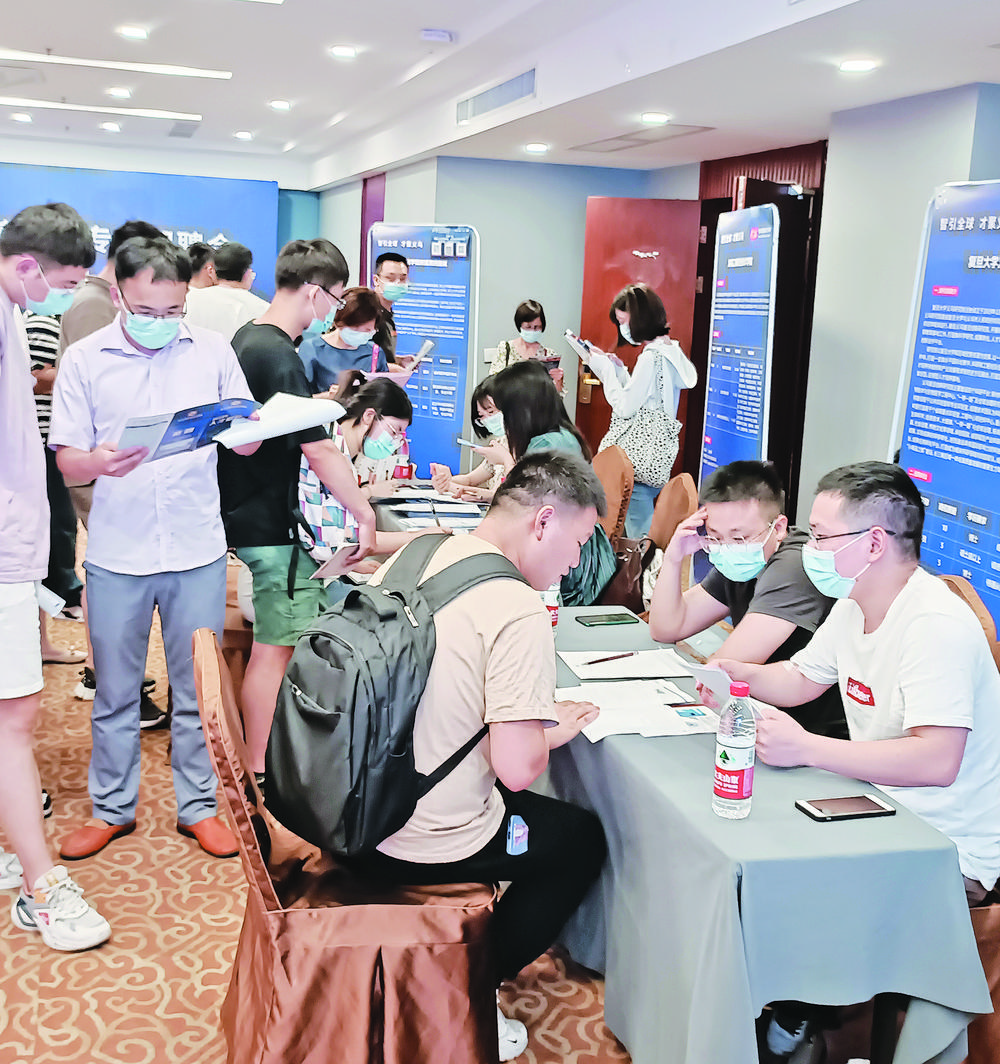 碩博人才招聘會現(xiàn)場 6月17日至19日,我市組織11家企事業(yè)單位攜448個碩博崗位,分赴武漢、西安開展“智引全球 才聚義烏”2022年義烏市碩博人才專場招聘會。本次活動由市委人才辦、市人社局共同主辦,旨在進一步滿足我市企事業(yè)單位對碩博研究生的人才需求,促進高校畢業(yè)生更加充分和更高質(zhì)量就業(yè)。為盡可能多地精準邀約到合適人才到場面試,市人社局前期在開展企業(yè)需求調(diào)研基礎上,還主動對接人才資源聚集的武漢和西安兩大城市的部分高校,匹配高端職位,定向挖掘邀約人才。經(jīng)過多方溝通協(xié)調(diào),最終確定了來自武漢大學、華中科技大學、西北工業(yè)大學、西安交通大學等高校的338名碩博人才到場參加活動,其中博士240名。 義烏工商學院、浙大四院、中國計量大學現(xiàn)代科技學院也到場參加活動,提供專任教師、臨床醫(yī)療、特聘研究員等200余個博士崗位!拔覀儗W院非常重視這次活動,共帶來了42個碩博崗位!绷x烏工商學院相關負責人表示,該學院迫切需要在創(chuàng)強建設方面引進大量高端人才,提升學院的教學水平。 “從現(xiàn)場情況來看,此次專場招聘活動效果超出預期,兩場招聘活動一共收到了67份簡歷,其中達成初步意向的有39人!边@位負責人說。 據(jù)相關統(tǒng)計表明,本次人才專場招聘活動中,達成初步就業(yè)意向143人,其中博士86人。市人社局還與部分在西安的義烏籍高層次人才代表進行座談,請他們?yōu)榧亦l(xiāng)經(jīng)濟社會發(fā)展積極建言獻策。 |