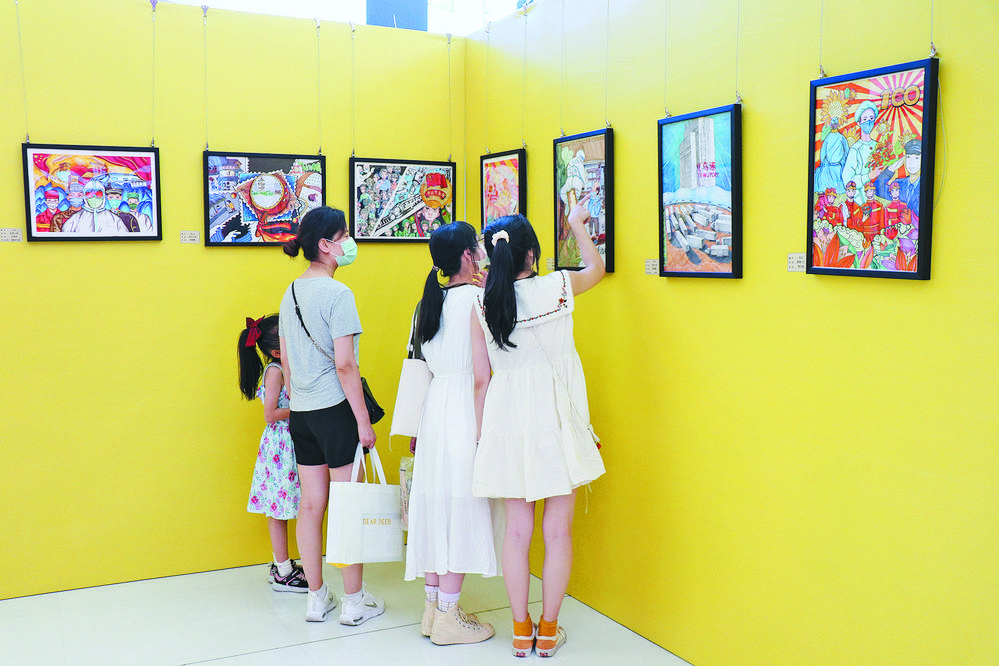 醫(yī)護(hù)人員與群眾同心抗疫的溫暖畫(huà)面、繪有“義烏歡迎你”的國(guó)粹繪畫(huà)、關(guān)于北京天安門(mén)、義烏雞鳴閣等地標(biāo)性作品……現(xiàn)場(chǎng),琳瑯滿目的青少年優(yōu)秀繪畫(huà)作品讓人眼花繚亂。 據(jù)了解,這些展出的作品,是在由團(tuán)市委、市少工委主辦,市青少年宮承辦的“隊(duì)旗飄飄心向黨,童心喜迎二十大”慶六一主題繪畫(huà)征集活動(dòng)中征集的。此次繪畫(huà)作品征集評(píng)選面向全市青少年,自5月中旬至6月中旬,共征集到各類繪畫(huà)作品600余幅。目前,這些優(yōu)秀作品已統(tǒng)一展出。 |