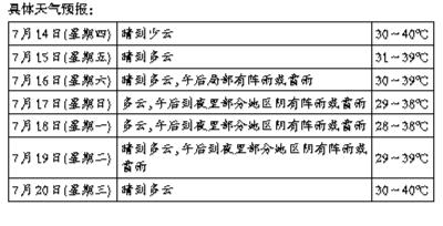 7月11日—13日,我市發(fā)布高溫紅色預(yù)警信息,提醒廣大市民做好防暑降溫工作。據(jù)最新天氣預(yù)報(bào),直至7月20日,最高氣溫都將在37℃“酷暑線”以上。 市氣象部門預(yù)計(jì),未來幾天我市將持續(xù)晴熱高溫。今明兩天,晴好天氣持續(xù),最高氣溫在40℃上下。7月16日—19日,副熱帶高壓主體先南退后北抬,午后多分散性陣雨或雷雨。別以為有雨水,高溫就能有所減緩,7月16日—19日最高氣溫仍“高位運(yùn)行”,在38~39℃,“高溫+雨水”,只會(huì)使天氣變得更悶熱。對(duì)此,氣象部門提醒:近期我市持續(xù)晴熱高溫,要注意防暑降溫,減少外出,做好個(gè)人防護(hù),避免在高溫時(shí)段進(jìn)行戶外作業(yè)和活動(dòng);持續(xù)高溫,將對(duì)交通、建設(shè)、農(nóng)業(yè)、防火及疫情防控等工作產(chǎn)生不利影響,應(yīng)注意防范;要加強(qiáng)電力調(diào)度和水資源管理,防范可能出現(xiàn)的伏旱對(duì)城鄉(xiāng)居民生活及工農(nóng)業(yè)生產(chǎn)的不利影響;7月17日—19日,要注意防范有雷雨地區(qū)可能伴有的短時(shí)暴雨和雷雨大風(fēng)的強(qiáng)對(duì)流天氣。 此外,7月16日,我們將邁入長達(dá)40天的“三伏天”,其中初伏為7月16日—25日,共10天;中伏為7月26日—8月14日,共20天;末伏為8月15日—24日,共10天。面對(duì)火辣辣的“三伏天”,我們可從衣食住行入手應(yīng)對(duì)。穿衣方面,可選擇輕薄透氣顏色淺的衣物;飲食方面,以清淡易消化為主,多吃瓜果勤喝水,補(bǔ)充必要的水分、鹽分、熱量、維生素、蛋白質(zhì)等;居住方面,環(huán)境溫度超過32℃時(shí),電扇已無法帶走人體暑熱感,必須開啟空調(diào)降低室溫,居室溫度控制在26℃較理想;出行方面,應(yīng)避開中午12時(shí)至下午3時(shí)的烈日暴曬時(shí)段,如果必須在高溫時(shí)段作業(yè),應(yīng)做好個(gè)人防護(hù),一旦出現(xiàn)頭暈、眼花、無力、耳鳴、惡心、心悸、注意力不集中等中暑先兆,就立即停止作業(yè),轉(zhuǎn)移至陰涼通風(fēng)處。重癥中暑必須及時(shí)送醫(yī)救治。 |