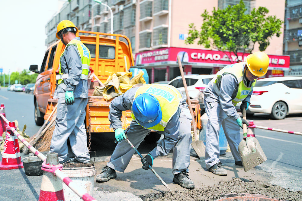 連日來,單日最高氣溫不斷被刷新。有這樣一群人,一頂安全帽、一套工作服、一雙鋼板工作鞋、一副手套,頂著烈日,扎根一線,日復一日走在改善城市環(huán)境、保障排水暢通的大街小巷。他們就是“排水管家”。 7月12日上午9時,太陽已經(jīng)“在崗”3個多小時,北苑街道季宅一區(qū)53號樓附近,排水公司工作人員何位民和同事正在進行井蓋修復工作。馬路上破損的井蓋對于行人和車輛來說,是潛在的威脅,及時將破損井蓋修復是排水公司日常工作之一?崾罡邷叵拢ぷ魅藛T揮汗如雨,“打地基、安裝、加固、檢查,完成這一套流程通常需要2小時,”何位民邊擦汗邊說,“很多井蓋位于道路中間,周邊也沒有建筑物遮擋,路面溫度通常能達50℃,加之井蓋基本上都是球墨鑄鐵的,被太陽一曬,更是滾燙! 當天中午11時,烈日炙烤下,陣陣熱浪撲面而來,搶修人員完成井蓋修復后,全身已經(jīng)大汗淋漓!叭蝿斩嗟臅r候,得修四五個井蓋,一天下來,我起碼要喝三壺水,工作服就沒有干透的時候!闭f話間,搶修人員收拾完工具,準備趕赴下一個搶修點。 巡管員除了要修復破損井蓋、水管,還要疏通和清理易堵污水管網(wǎng)。7月13日下午2時,最高氣溫直逼40℃,滾滾熱浪繼續(xù)“烤驗”著“排水管家”的耐心和毅力。排水公司運維班組卻一如既往地對區(qū)域內(nèi)污水井進行巡查。 巡查過程中,巡管員發(fā)現(xiàn)北苑街道丹溪社區(qū)周邊有段污水管道內(nèi)存有沙石,導致流水不暢。設備操作員何紹富一行接到反饋后立即穿戴好裝備,驅(qū)車前往問題地點,準備開展污水井疏通清理工作。何紹富說:“現(xiàn)在天氣熱起來了,大家用水量增加,如果管網(wǎng)堵了,排水不暢,容易影響居民的正常生活,所以一定要及時進行疏通! 烈日下,幾名“排水管家”穿戴得嚴嚴實實,互相配合開始管道疏通作業(yè)。何紹富熟練地打開井蓋,啟動疏通設備,對有沙石管道進行疏通。陳清偉從車上拿出清撈工具,將一勺污泥從污水管內(nèi)掏出,裝入袋子,在陽光下,臭氣更加濃重,但他早已習慣了這股味道。陳清偉說,工作日每天身上都是汗水和污水的臭味,但一人臟換來萬家凈,自己辛苦一點也值了。 高溫下,排水公司近300名一線運維人員,每天奔走在全市7000多公里的雨污水管線上,他們用自己的堅守確保排水管網(wǎng)的有序暢通,全力守護城市排水“安全防線”。 |