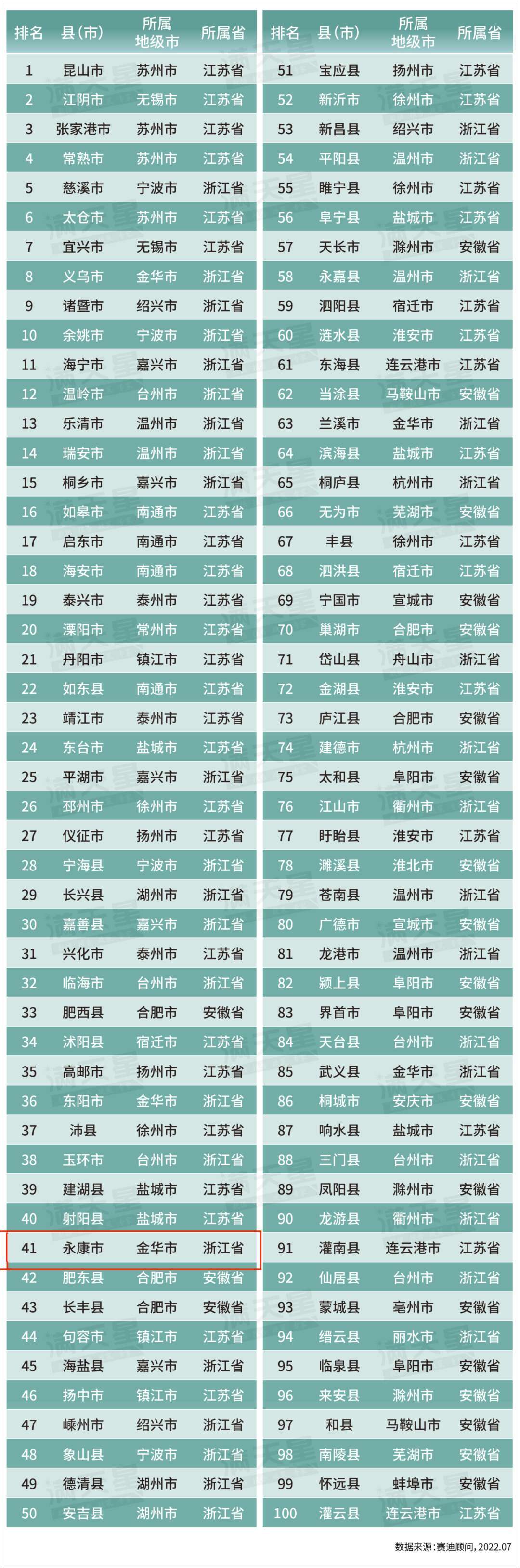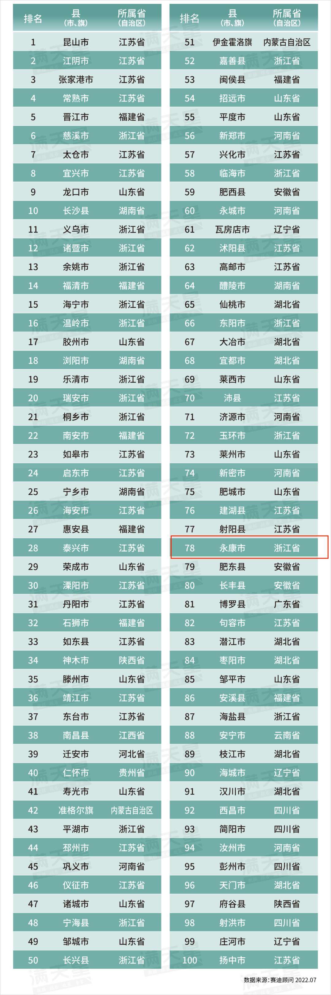 7月20日,2022賽迪百強縣榜單、2022賽迪長三角百強縣榜單發(fā)布。