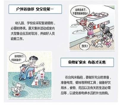 臺(tái)風(fēng)來臨前 1.及時(shí)收聽、收看或上網(wǎng)查閱臺(tái)風(fēng)預(yù)警信息,了解政府防臺(tái)行動(dòng)對(duì)策。 2.關(guān)緊門窗,加固易被風(fēng)吹動(dòng)搭建物。 3.身處危舊房屋及易受淹低洼地區(qū)的人員要及時(shí)轉(zhuǎn)移。 4.檢查電路、煤氣等設(shè)施是否安全。 5.露天集體活動(dòng)或室內(nèi)大型集會(huì)應(yīng)及時(shí)取消,并做好人員疏散工作。 6.條件允許時(shí),可用膠帶以“米”字形加固窗戶,以免風(fēng)力太強(qiáng)擊碎玻璃。 城市內(nèi)澇時(shí) 1.不要在有積水的道路上行走,注意路邊防汛安全警示標(biāo)志。 2.不要靠近有旋渦的地方,防止跌入缺失井蓋的深井、地坑等危險(xiǎn)區(qū)域。 3.開車時(shí),水深位置路段應(yīng)下車探索或繞行,不要盲目強(qiáng)制通行。 4.如果車在深水中熄火,不要再啟動(dòng)以防止發(fā)動(dòng)機(jī)進(jìn)水;當(dāng)汽車外積水進(jìn)一步加深時(shí),要及時(shí)逃生。 臺(tái)風(fēng)來臨時(shí) 1.盡量不要外出。 2.不要在建筑物旁避風(fēng)躲雨,強(qiáng)風(fēng)有可能吹倒建筑物、高空設(shè)施,易造成人員傷亡,同時(shí)陽臺(tái)上花盆、擺設(shè)等物也要收好,防止被風(fēng)吹倒砸傷他人。 3.盡量避免在河邊和橋上行走,行人在路上、橋上、水邊行走,容易被吹倒或吹落水中,除非萬不得已,千萬別冒險(xiǎn)涉水。 4.提高對(duì)山體滑坡、泥石流的警惕,山地災(zāi)害易發(fā)地區(qū)和已發(fā)生高強(qiáng)度大暴雨地區(qū)要做好監(jiān)測(cè)預(yù)警工作,一旦發(fā)現(xiàn)山體滑坡、泥石流等地質(zhì)災(zāi)害征兆,要及時(shí)撤離。 5.臺(tái)風(fēng)天視線不好,“慢”和“穩(wěn)”最重要,不要盲目異線超車,密切關(guān)注道路積水、交通阻塞及中斷信息,注意觀察周邊的行人及車輛,確保行駛安全,車流堵塞時(shí),應(yīng)服從交警的指揮,及時(shí)接受疏導(dǎo)。 6.臺(tái)風(fēng)天停車,避免將車輛停放在露天廣告牌下、大樹旁及地勢(shì)低洼處(地下車庫),防止重物墜落砸傷車輛或強(qiáng)降雨導(dǎo)致車輛被淹。 7.行人出行時(shí),留意周圍是否有電線,不要靠近或在架空線、變壓器下避雨,因?yàn)榇箫L(fēng)可能將架空電線刮斷,雷擊和暴雨容易引起裸線或變壓器短路。 下暴雨時(shí)如何避免雷擊 1.不要在大樹底下避雨。因?yàn)橄掠陼r(shí),大樹潮濕的枝干相當(dāng)于一個(gè)引雷裝置,如果用手扶大樹,就仿佛用手摸避雷針一樣。 2.下雨時(shí)不要在水邊、洼地停留,要迅速到附近干燥的住房避雨,要觀察住房是否適合避雨。 3.不要拿著金屬物品在雷雨中停留,因?yàn)榻饘傥锲穼儆趯?dǎo)電物質(zhì)。 4.打雷時(shí),首先要做的就是關(guān)好門窗,防止雷電直擊室內(nèi)和球形雷飄進(jìn)室內(nèi)。 |