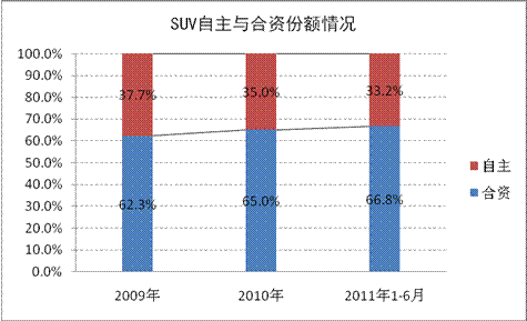 SUV市場合資與自主品牌市場份額情況圖 銷量排名雖合資占多數,但自主品牌車型排第一可證自主品牌還有希望