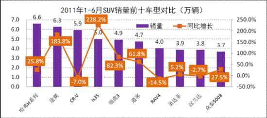 1-6月SUV銷量前十車型對比分析 整體市場出現止跌反彈,SUV市場應有好表現。
