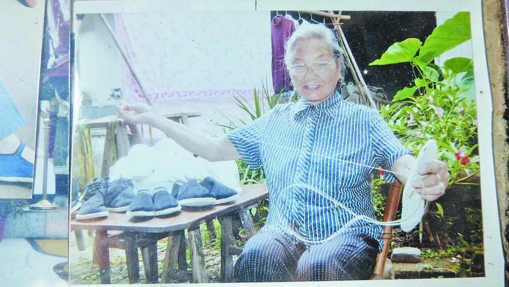 在上世紀(jì)六七十年代的農(nóng)村,人們腳上穿的幾乎清一色是手工做的“千層底”布鞋,春、夏、秋季穿單鞋,冬季穿棉鞋。 “多穿布鞋,穿布鞋養(yǎng)腳,走路穩(wěn)當(dāng)、踏實(shí)!泵棵孔哌M(jìn)尚陽老街的“老太婆布鞋”,被人稱為“布鞋奶奶”的朱銀香總要念叨。再過5個(gè)月,朱銀香就90歲了。她從13歲開始學(xué)做布鞋,至今已有77年。她納的“千層底”布鞋聞名赤岸、佛堂等地,很多客人特意來找她做布鞋,就沖這鞋舒服、耐穿。 從小學(xué)會(huì)納“千層底” 可愛精致的孩童布鞋、軟底結(jié)實(shí)的黑布鞋、樣式新穎的花布鞋……在朱銀香的家里,一雙雙已定型完成的布鞋像一個(gè)個(gè)乖巧懂事的孩子,整齊地排排落座于籃筐中。細(xì)細(xì)觀察,這些布鞋鞋碼不一、樣式豐富、色彩多樣,每雙鞋細(xì)節(jié)平整、精致牢固,給人一種結(jié)實(shí)新穎的直觀感受。 “做鞋最重要的就是納鞋底,這‘千層底’很多人都學(xué)不會(huì)呢!敝煦y香一邊拿著布鞋輕敲使其定型,一邊娓娓道來。朱銀香來自赤岸鎮(zhèn)止方村。13歲時(shí),她就跟著母親學(xué)納“千層底”,小小的身體,總是用盡全力去縫制鞋底,14歲時(shí),她就學(xué)會(huì)了制作一雙完整的布鞋。后來,朱銀香嫁到慈溪村,過上了“晴天去田里,雨天做布鞋”的日子。當(dāng)時(shí),她不僅要照顧家里5個(gè)孩子,還要去山里種玉米、趕野豬,只有雨天或者晚上閑暇時(shí),朱銀香才有時(shí)間坐在家里慢慢做布鞋。那時(shí)候,家人一年四季穿的鞋子幾乎都是朱銀香一手做出來的。 朱銀香告訴記者,做布鞋少說也有近百道工序,而最費(fèi)時(shí)、最關(guān)鍵、最辛苦的工序就是納鞋底。因鞋底是一層層棉布用漿糊粘起來的,在疊了30層棉布后,再曬干或烘干成布板,俗稱“打袼褙”。隨后把袼褙切成一片片的鞋底,每片鞋底用新白布條包上四邊后粘合,之后用麻繩把粘合后的鞋底沿四邊縫合。 “一般鞋底較厚,針不易穿,所以要用納鞋用的錐子!敝煦y香說。她在納鞋底時(shí),都會(huì)給右手食指套上頂針協(xié)助進(jìn)行,即便這樣有時(shí)仍很吃力,納鞋底的時(shí)候,要一只手把袼褙攥緊,另一只手用一把特制的錐子扎穿過去,再把那邊紉有線麻繩的縫衣針穿過來,然后使勁拽緊拉實(shí)。據(jù)說,納鞋底既要有力氣又得細(xì)致,納出的鞋底就松緊適度、結(jié)實(shí)耐穿。 堅(jiān)持手藝的精致與創(chuàng)新 朱銀香做布鞋的許多材料都是自己親手制作的,為了做縫制鞋底的麻繩,她不怕風(fēng)吹日曬地去田里采大量的蓖麻?富丶液,再選取上等的蓖麻打黃蠟、磨線,直到麻繩光滑了才能用。這種“搓麻繩”的方式現(xiàn)在已不常見,不過朱銀香至今堅(jiān)持自己做。 “做布鞋有很多講究,不過這只有做的人和穿的人才懂。”朱銀香說。為了讓鞋穿著舒適,她從來不會(huì)忽略的一道工序就是定型。每每納好鞋底后,朱銀香就將鞋幫縫上去,這還不算完成,她還要將鞋底和鞋幫用鐵錘槌平,槌時(shí)要靠模板木楦加工,不能走樣,這就是定型工序。 朱銀香做任何事都堅(jiān)持親力親為,住在慈溪村時(shí),她步行20里路到尚陽買米,之后又步行扛米回家。她的韌性與堅(jiān)持也體現(xiàn)在做布鞋上。26年前,她搬到尚陽老街女兒家的房子里住,此后便專門做鞋子自力更生。朱銀香70歲之前,常常受邀前往新樟村、佛堂田心等地的顧客家里做布鞋!耙话闶羌夼畠旱娜思屹I去當(dāng)嫁妝用,一訂就是好幾十雙!敝煦y香說,最多的時(shí)候,有個(gè)顧客一次訂了50多雙。 去別人家里做鞋比較輕松,顧客基本會(huì)把用到的材料準(zhǔn)備好,朱銀香只要過去做就可以了。70歲之后,由于身體吃不消,朱銀香便不再上門做布鞋了,即便如此,她的生意依然很好。“很多客人把做好的鞋底送到家里來,讓我?guī)兔ψ鲂,說我做的樣式他們喜歡!敝煦y香從抽屜里拿出上百?gòu)埿瑯,每一個(gè)都是她自己設(shè)計(jì)和創(chuàng)新的。 “拿過來給我做的鞋子,我都會(huì)把鞋底敲過,布板剪好,再把鞋面糊上去,鞋口是讓別人做的!敝煦y香說。她也會(huì)在做布鞋的過程中使用一些小技巧,比如為了方便區(qū)分每雙鞋,她會(huì)在所有鞋底和鞋面,用不同花樣和顏色的布料做標(biāo)記。由于長(zhǎng)年做布鞋,朱銀香的手上長(zhǎng)滿了繭。 在一針一線中傳承老手藝 做布鞋幾乎是朱銀香生活的全部,只要有空,她就會(huì)納鞋底,時(shí)而穿針引線,時(shí)而比劃比劃,一個(gè)針線兜,里面裝滿各種針線、鞋樣品、頂針、碎布條,她對(duì)這些工具如數(shù)家珍,每一樣都陪伴她度過漫長(zhǎng)的歲月。 “我做小布鞋一般只要兩天,做一雙大布鞋以前只要一周,現(xiàn)在要花費(fèi)10多天才能完成!比缃,朱銀香視力逐漸下降,納鞋底的力氣也不夠了。為了將這門老手藝傳承下去,朱銀香找來慈溪村的手藝人小妹,讓她幫忙做些力氣活,如納鞋底、縫制鞋幫等等。一開始,朱銀香不放心小妹的手藝,她就親自把鞋樣剪好,模具做好,讓小妹照著這個(gè)樣式縫。后來,小妹手藝越來越好,朱銀香才逐漸放心。 “朱大娘的手藝好,是遠(yuǎn)近聞名的,我還差遠(yuǎn)了呢,只希望跟著她多學(xué)點(diǎn),不能讓這好手藝失傳了!毙∶眯χf。如今市面上的布鞋基本是工廠里機(jī)器流水線上生產(chǎn)出來的,極少有手工縫