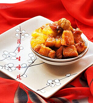 原料:雞胸肉、菠蘿塊、番茄醬、糖、鹽、胡椒粉、料酒、香油、淀粉、味精