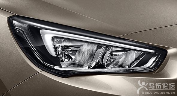 頭燈布置于格柵上緣,且與格柵呈較大夾角,俯沖感強(qiáng),更顯犀利,年輕動(dòng)感;高亮鍍鉻飾條與熏黑邊界形成強(qiáng)烈對(duì)比,形成更纖細(xì)的頭燈輪廓,更具速度感。