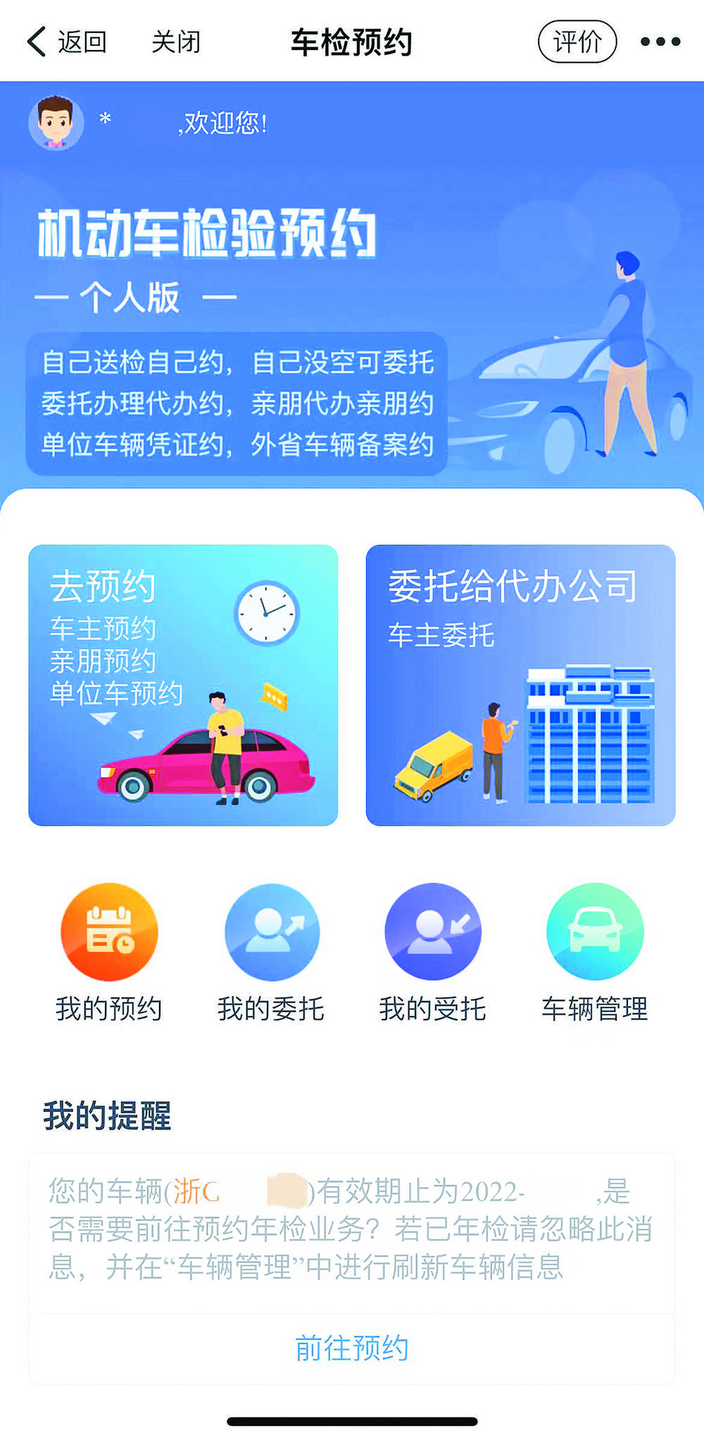 ▲預(yù)約人需憑預(yù)約二維碼進(jìn)行現(xiàn)場人臉識別簽到。 ▶“車檢預(yù)約”平臺升級后的主頁面。 11月26日,義烏“車檢預(yù)約”2.0平臺正式上線,我市所有機動車檢測站均同步啟用該平臺的車檢預(yù)約功能。 記者了解到,該平臺升級后,到檢測站辦理車檢的送檢人員,無論是車主本人、車主親友還是第三方代辦人員,都需提前通過“浙里辦”App的“車檢預(yù)約”平臺進(jìn)行預(yù)約,預(yù)約完成后才能辦理車檢業(yè)務(wù)。 為方便私家車進(jìn)行車輛檢測,“車檢預(yù)約”2.0平臺提供了三種車檢方式,即自行車檢、委托親友代辦車檢、委托代辦機構(gòu)代辦車檢,滿足廣大車主不同的車檢需求。“過去,私家車可直接由親朋或代辦人員幫忙簽到代檢,對送檢人員沒有嚴(yán)格限制;現(xiàn)在,車輛檢測實行預(yù)約簽到制,無論是車主還是代辦人員,誰送檢誰預(yù)約,保障了車檢環(huán)節(jié)的規(guī)范與安全!焙泔L(fēng)檢測站總工程師張金仁介紹。 記者看到,“車檢預(yù)約”平臺主頁下方有“去預(yù)約(車主預(yù)約、親朋預(yù)約、單位車預(yù)約)”和“委托給代辦公司(車主委托)”兩個窗口。若自行車檢,須由車主本人進(jìn)入“去預(yù)約”窗口,選擇車檢機構(gòu)地址與時間,完成預(yù)約即可辦理車檢;若委托親友代辦車檢,須由親友進(jìn)入“去預(yù)約”窗口,憑行駛證證芯編號進(jìn)行預(yù)約,需要注意的是,非本人車每年辦理業(yè)務(wù)次數(shù)不超過12次;若委托第三方機構(gòu)代辦車檢服務(wù),車主可通過“委托給代辦公司”窗口進(jìn)行車檢代辦服務(wù)。 “自己送檢自己約,自己沒空可委托;委托辦理代辦約,親朋代辦親朋約;單位車輛憑證約,外省車輛備案約!边@是平臺上顯示的標(biāo)語。需要注意的是,車輛送到檢測站后,預(yù)約人還需憑預(yù)約二維碼進(jìn)行現(xiàn)場人臉識別簽到,確保送檢人與預(yù)約人一致。因此,不管采取哪種方式,受托車檢的人(代辦機構(gòu)的工作人員或代辦的親友)必須親自將車開到檢測機構(gòu),而不能再將車交給其他人去車檢。 “對于代辦人員上門接車服務(wù)的,雙方需在預(yù)約平臺上確認(rèn)接車、交車、還車等流程,實現(xiàn)代檢服務(wù)的閉環(huán)管理!睆埥鹑时硎,所有第三方代辦人員都是在代辦公司中實名注冊、審核備案的,而且代辦機構(gòu)的人員均已承保代駕責(zé)任險和代駕人員意外險,不僅保障了代辦人員的人身安全,也讓車主更放心。 此外,對于單位車輛,可以由車輛單位委托單位車輛管理員在代辦規(guī)范化管理系統(tǒng)進(jìn)行備案,然后由單位車輛管理員進(jìn)行預(yù)約或委托第三方代辦公司參加年審,也可以由單位車輛實際駕駛?cè)藨{行駛證證芯編號直接預(yù)約。單位車輛管理員備案須通過首頁“車輛管理”下的“企業(yè)備案”進(jìn)行相應(yīng)備案操作。每個單位允許備案管理員一名,如需更換,由下一任管理員重新備案申請即可。 |