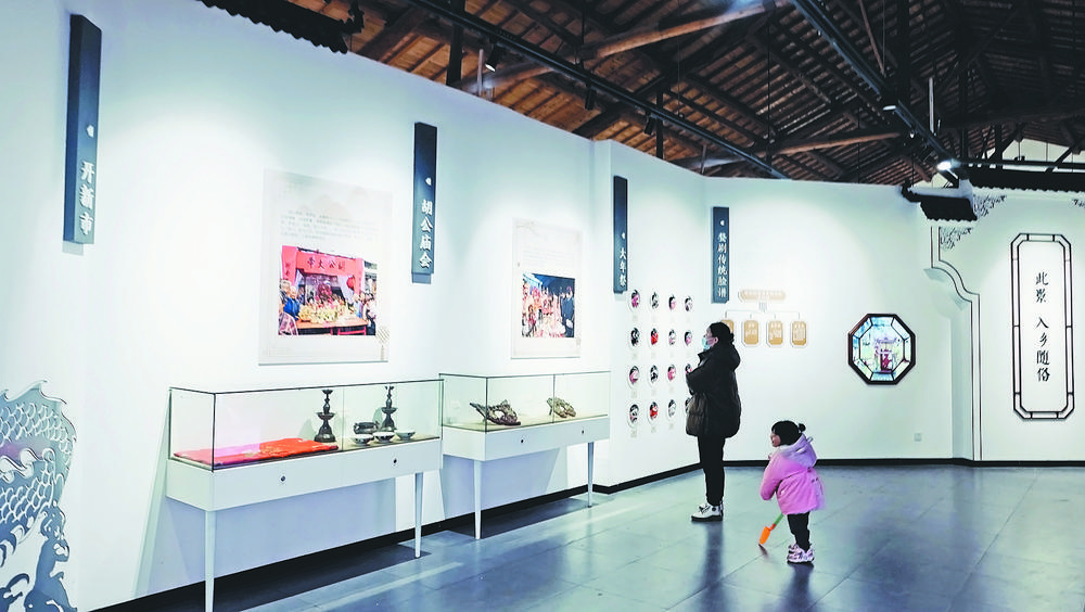當悅耳的婺劇唱腔貫穿村巷,恬靜的村莊生活瞬間充滿了熱鬧的文化氛圍;當濃郁的糖香飄越千里,獨具地方特色的紅糖技藝帶活了整個村的美食經(jīng)濟;當剪窗花、做布鞋、編竹籃等民俗技藝傳承深遠,孩子們的精神世界逐漸充滿了趣味與挑戰(zhàn)……看遍義烏文化瑰寶,“非遺”資源延續(xù)了民族精粹,燦若日月星辰。 多姿多彩的非物質文化遺產(chǎn)滲透在群眾的日常生活中,更在保護與傳承中發(fā)揚光大。今年,建在缸窯村的義亭非物質文化遺產(chǎn)展示館(以下簡稱義亭非遺館)被列入浙江省鄉(xiāng)村博物館名錄,這里不僅凝聚了義烏本土非物質文化遺產(chǎn)精粹,其展廳更以創(chuàng)新的數(shù)字化視聽模式,帶領觀眾體驗充滿傳統(tǒng)文化魅力的流光盛宴。 讓“鄉(xiāng)音”震徹鄉(xiāng)野 “見多少,王孫公子把駿馬乘,旗鑼傘扇迎佳人……”穿過用紅磚堆疊的小院兒,經(jīng)過一家古樸寧靜的鄉(xiāng)村書屋,婺劇《姐妹易嫁》的悠揚樂曲聲便從義亭非遺館傳出,飛入耳中。從門外望去,館內似一個小小的劇場,無論賓客多少,唱曲聲從不間斷!斑@曲聲是從多媒體操作屏里放出來的,觀眾多的時候,我們會多放幾首曲目,來展示婺劇的魅力!绷x亭非遺館工作人員劉梅花表示。 踏進展館,便徜徉在充滿文藝氣息的空間,讓人如夢似幻。記者看到,義亭非遺館內設“此情 鄉(xiāng)音未改”“此時 鄉(xiāng)土滋味”“此刻 心手相傳”三個展廳,每個展廳都各具特色,通過實物、影音、文字結合的方式,向觀眾展現(xiàn)本土曲藝類、技藝類、民俗類文化遺產(chǎn)的魅力。而最熱鬧的莫過于“此情 鄉(xiāng)音未改”展廳,婺劇、道情、花鼓、鑼鼓班……源出義亭的曲藝文化紛紛在這里生根開花,成為老百姓生活中不可或缺的精神養(yǎng)分。 “婺劇俗稱‘金華戲’,迄今已有400多年歷史,無論是在行頭與化妝體制上,都有自身特點,深受村民們喜歡。”缸窯村村委委員賈亦倩表示,該廳不僅展示了婺劇的起源、角色行當、伴奏樂器,還特意展示了一面婺劇傳統(tǒng)臉譜墻,16張角色不同、妝造不同的臉譜展示,加深了老百姓對婺劇的了解和喜歡。此外,展廳內還設了一扇可放映的多媒體門簾,門簾上,播放著婺劇劇目《僧尼會》,門簾后,展示著一襲溢彩流光的婺劇盔服,仿佛置身于劇情跌宕的婺劇世界,讓人流連忘返。 這幾年,國家級非物質文化遺產(chǎn)項目金華道情代表性傳承人葉英盛帶頭回到鄉(xiāng)村傳唱道情,使得道情文化重歸義烏農村的視野,成為百姓喜聞樂見的“唱新聞”形式;吹拉彈唱的鑼鼓班滲透在鄉(xiāng)村的角角落落,為農村各類賽會、慶賀豐年、紅白喜事、生日祝壽、商鋪開張等場合助陣彈奏,成為百姓生活中不可或缺的民間樂團……義烏本土的曲藝以悠久的歷史、多樣的形式以及濃郁的地方特色,在鄉(xiāng)間田頭、在街頭巷尾、在當?shù)厝嗣竦男睦锷l(fā)芽。無論是圓潤渾厚的道情,或是抑揚頓挫的花鼓,或是婉轉悠揚的婺劇,古往今來,“春夏秋冬,唱聲不斷”的熱鬧場景不斷在義亭上演。 讓鄉(xiāng)土滋味甜上心頭 天氣逐漸轉冷,義亭鎮(zhèn)各家紅糖廠內卻是一派熱火朝天的景象:十幾名榨糖師傅按照古法榨糖的基本工序,榨汁、清凈、熬制、成型、干燥等熟練操作著。陣陣糖香撲鼻而來,為義烏的冬天渲染上了甜蜜的氛圍。而這樣的場景,也同樣在義亭非遺館內上演!按藭r 鄉(xiāng)土滋味”展廳內,義烏紅糖制作技藝不僅以古代簡筆畫的方式記錄下來,更通過文字、多媒體視頻播放等方式留存下來。 “義烏種蔗榨糖的歷史已有400多年,幾乎人人都有著關于榨紅糖的甜蜜記憶。”賈亦倩表示,自清朝乾隆年間,義烏本地人便將紅糖加工成糖餅、姜糖等,開始走南闖北的“雞毛換糖”生活,紅糖是義烏人賴以生存和發(fā)展的重要紐帶。而作為紅糖之鄉(xiāng),義亭鎮(zhèn)的紅糖廠早已遍地開花,來這里買紅糖的客人逐年增多。紅糖麻花、紅糖糖梗、麻糖、姜糖……紅糖制作出的美食在與時俱進中花樣百出,紅糖制作技藝傳承的使命與責任也更艱巨了。 在義亭非遺館內,紅曲酒釀造技藝也成了“舌尖上的義烏”不可或缺的傳統(tǒng)美味。其實,紅曲釀酒最早可追溯到2500年前的春秋戰(zhàn)國時代,在全國釀酒史上占有一席之地,紅曲酒具有舒筋活血養(yǎng)顏的保健功能。而義烏紅曲釀的酒有獨特的生產(chǎn)工序,為了生動地展現(xiàn)紅曲釀酒的工序流程,義亭非遺館邀請專人以泥塑人物場景重現(xiàn)的方式,展示了紅曲釀酒全過程。細細觀察,每一個泥塑人物都栩栩如生,每一步釀酒工序都精致講究,讓人為之驚嘆。 此外,義烏也是金華火腿的發(fā)祥地之一,明清時期,義烏人做得最大的生意便是火腿貿易,向來有“金華火腿出義烏,義烏火腿出田心”的說法。關于蜜棗,《中國名產(chǎn)》中有記載:“江南棗中,佳品是義烏南棗!鼻迩r,南棗曾列為貢品,同為義烏大棗制作的金絲琥珀蜜棗,素有“蜜餞珍品”之譽!拔覀兿朐谡故玖x烏棗加工技藝的同時,將義亭棗的特色產(chǎn)品也展示出來,以此帶動鄉(xiāng)村振興,助推村集體共富!辟Z亦倩說。 讓傳統(tǒng)技藝心手相傳 紋路整齊、技巧出彩的麥稈扇成品,精美剔透、浮光掠影的戲曲頭飾,花色多樣、厚薄不一的布鞋,還有將佛堂老街、義亭缸窯、黃山八面廳和雙林寺等場景相結合制作的《義