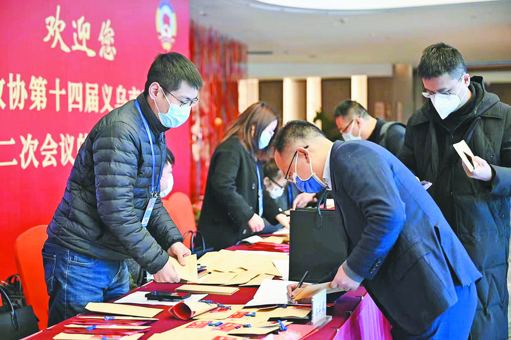 心系發(fā)展大計,懷揣民生福祉。1月30日下午,參加市政協(xié)十四屆二次會議的政協(xié)委員,陸續(xù)來到指定地點向大會報到。 領(lǐng)取委員證和會議材料、仔細將證件佩戴在胸前……在會議駐地,前來報到的委員們?nèi)w佩戴口罩,在工作人員引導(dǎo)下有序辦理報到手續(xù)。領(lǐng)取會議資料后,委員們迅速進入狀態(tài),仔細研讀會議資料,認真了解大會內(nèi)容,整個流程簡便高效、有條不紊。 “迭代升級傳統(tǒng)制造業(yè),提升工業(yè)綜合競爭力”“構(gòu)筑電商全周期賦能體系,推動電商行業(yè)高質(zhì)量發(fā)展”……完成報到程序后,不少委員開始互相交流,話語間盡是民生實事和經(jīng)濟社會發(fā)展。大家紛紛表示,會議期間將遵守大會的各項紀律規(guī)定,以飽滿的政治熱情、昂揚的精神狀態(tài),緊緊圍繞市委、市政府的中心工作,實事求是地反映社會熱點、難點問題,切實履行好政協(xié)委員職責(zé),參政議政、建言獻策,為義烏高質(zhì)量發(fā)展貢獻智慧和力量。 據(jù)悉,參加本次會議的政協(xié)委員有325名,邀請18名同志全程列席會議,其他列席人員通過收看會議直播、新聞報道、閱讀會議資料等方式列席會議。 |