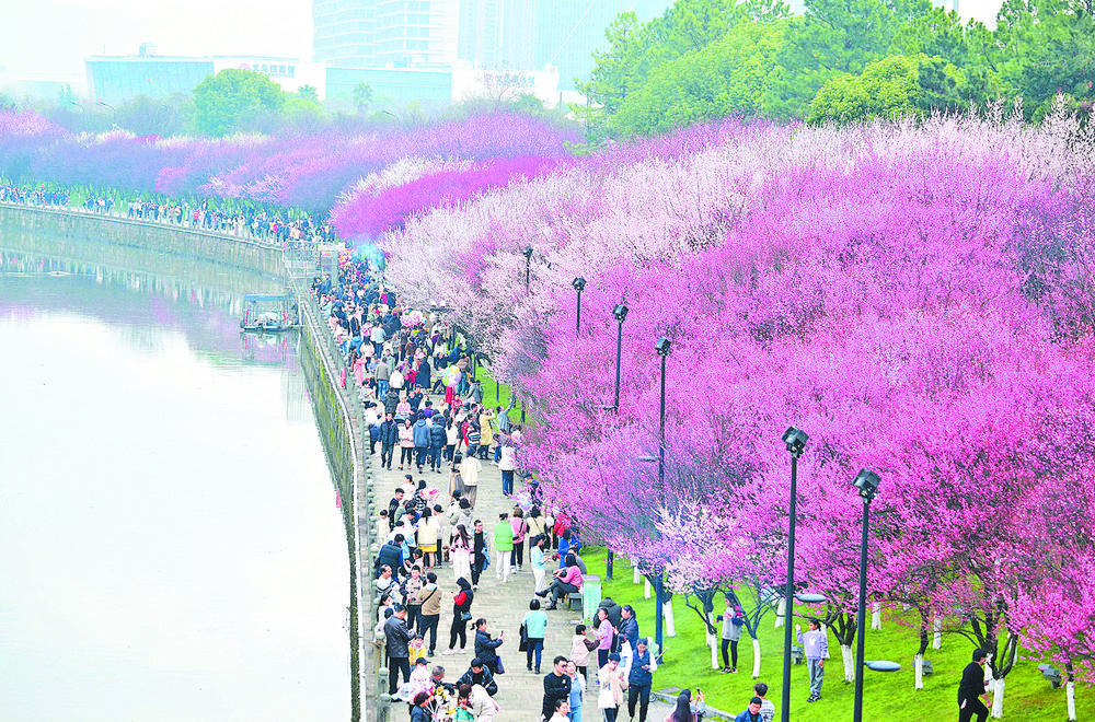 義烏江濱綠廊十里梅花林,成了市民家門口踏春的好去處。