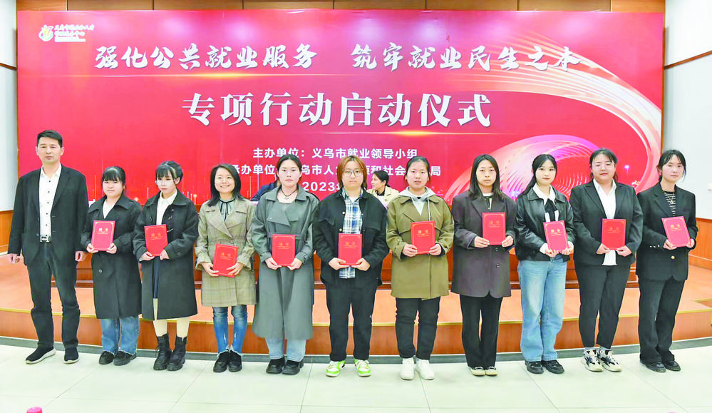 3月14日下午,我市啟動“強(qiáng)化公共就業(yè)服務(wù),筑牢就業(yè)民生之本”專項(xiàng)行動。這是金華市首次開展的公共就業(yè)服務(wù)專項(xiàng)行動,也意味著我市首批零工市場建設(shè)同步啟動。 據(jù)悉,為推動公共就業(yè)服務(wù)、就業(yè)幫扶、共同富裕在義烏落地生根,市就業(yè)工作領(lǐng)導(dǎo)小組辦公室就此次的專項(xiàng)行動工作進(jìn)行部署,要求各鎮(zhèn)街和相關(guān)部門要強(qiáng)化隊(duì)伍建設(shè),組建公共就業(yè)服務(wù)隊(duì)伍,推進(jìn)“三送六清”工作,通過強(qiáng)化產(chǎn)業(yè)支持、提升公共就業(yè)向心力、培育專題人才等舉措促進(jìn)高質(zhì)量就業(yè)。要樹立就業(yè)優(yōu)先的理念和意識,重點(diǎn)為我市就業(yè)困難人員、失業(yè)人員、離校未就業(yè)高校畢業(yè)生、義烏籍應(yīng)屆畢業(yè)大學(xué)生等重點(diǎn)群體提供就業(yè)幫扶。要加強(qiáng)就業(yè)服務(wù)隊(duì)伍的培養(yǎng)和建設(shè),做到“專人專用”,各個鎮(zhèn)街發(fā)揮屬地職能,多途徑、多舉措加強(qiáng)公共就業(yè)服務(wù)力量。 活動現(xiàn)場,市就業(yè)工作領(lǐng)導(dǎo)小組為我市首批就業(yè)指導(dǎo)員頒發(fā)聘書,并為就業(yè)服務(wù)指導(dǎo)站、義烏市首批零工市場、金華市級高質(zhì)量就業(yè)社區(qū)(村)授牌。值得一提的是,此次聘任的20名就業(yè)指導(dǎo)員是我市首次組建的公共就業(yè)服務(wù)專職人員,會后將派駐各鎮(zhèn)街指導(dǎo)、督促、協(xié)助開展公共就業(yè)服務(wù)工作,讓就業(yè)援助服務(wù)落地更加精準(zhǔn)高效。 就業(yè)是最基本的民生。近年來,隨著就業(yè)新形勢、新任務(wù)的發(fā)展需要,群眾對公共就業(yè)服務(wù)標(biāo)準(zhǔn)化、精細(xì)化、精準(zhǔn)化的要求也越來越高。黨的二十大報(bào)告指出,“實(shí)施就業(yè)優(yōu)先戰(zhàn)略,強(qiáng)化就業(yè)優(yōu)先政策,健全就業(yè)公共服務(wù)體系,完善重點(diǎn)群體就業(yè)支持體系,加強(qiáng)困難群體就業(yè)兜底幫扶”。當(dāng)前,我市已建設(shè)71個市級高質(zhì)量就業(yè)社區(qū)和19個金華市級高質(zhì)量就業(yè)社區(qū)(村),以社區(qū)為載體的廣覆蓋高質(zhì)量就業(yè)網(wǎng)絡(luò)基本成型。 我市大力開展“強(qiáng)化公共就業(yè)服務(wù),筑牢就業(yè)民生之本”專項(xiàng)行動,通過構(gòu)建“一站兩群三員”三級聯(lián)動新模式,實(shí)現(xiàn)市級統(tǒng)籌指導(dǎo)、鎮(zhèn)街屬地管理、社區(qū)(村)專人落實(shí),推動公共就業(yè)服務(wù)精準(zhǔn)落地。在全市每個鎮(zhèn)(街道)建立一個就業(yè)服務(wù)驛站,搭建微信就業(yè)服務(wù)群、浙政釘就業(yè)工作群兩個群組,配備市就業(yè)督導(dǎo)員、鎮(zhèn)街就業(yè)指導(dǎo)員、社區(qū)(村)就業(yè)服務(wù)員三級專員,形成“三級聯(lián)動”就業(yè)服務(wù)網(wǎng)絡(luò),通過調(diào)查摸底、崗位推薦、政策落實(shí)、創(chuàng)業(yè)指導(dǎo)、氛圍營造等五類服務(wù),精準(zhǔn)幫扶我市重點(diǎn)群體實(shí)現(xiàn)再就業(yè),解決就業(yè)幫扶“最后一公里”。今年以來,全市服務(wù)重點(diǎn)群體3952人次,幫扶失業(yè)人員等重點(diǎn)群體284人實(shí)現(xiàn)再就業(yè)。 |