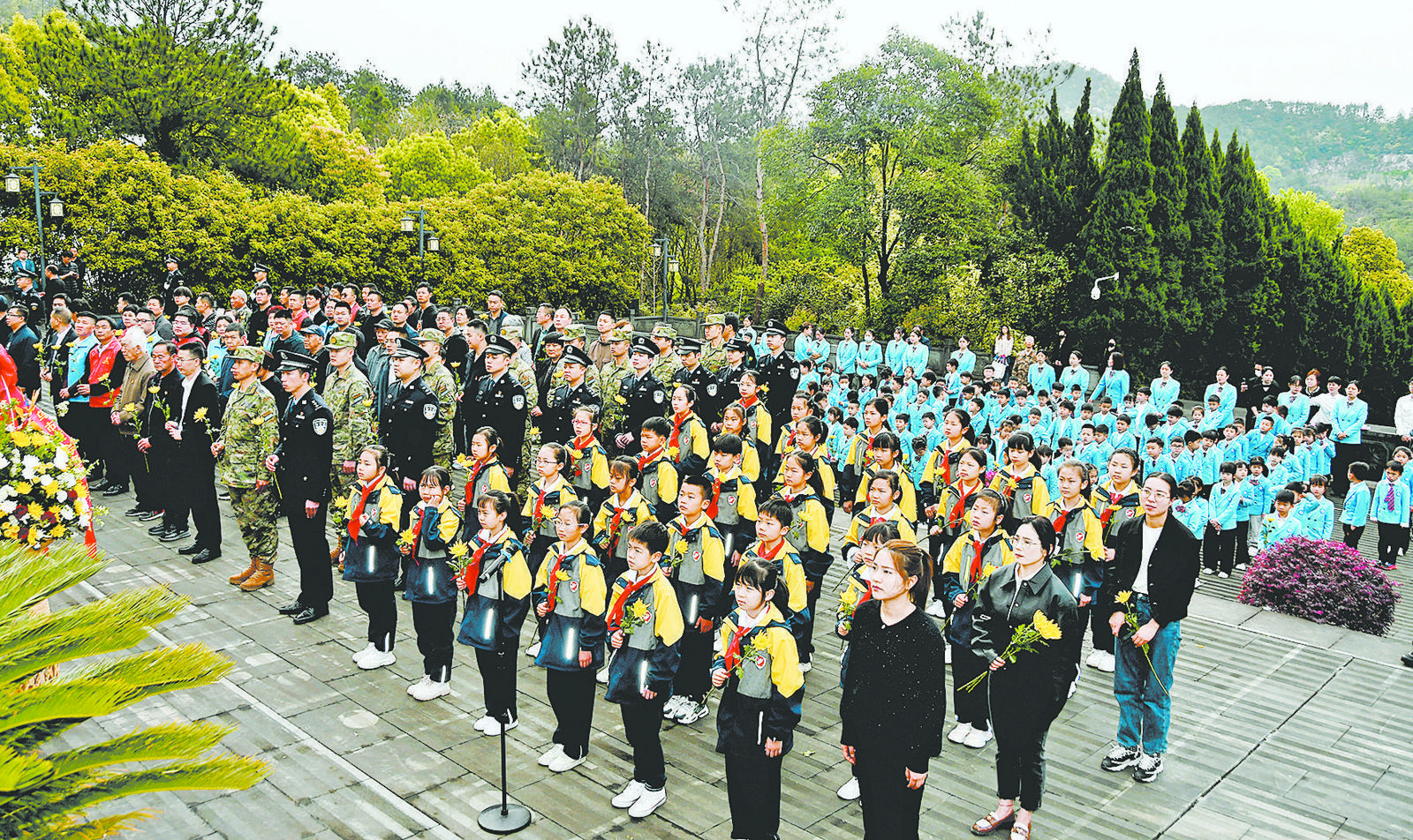 清明時節(jié)雨,最憶忠烈魂。昨日,我市“2023·崇尚·清明祭英烈”活動在長城公園舉行。市委常委、組織部部長蔣濤參加。 長城公園內莊嚴肅穆,矗立在公園內的革命烈士紀念碑顯得格外寧靜莊嚴。上午9時許,儀式開始。伴隨著雄壯的《義勇軍進行曲》,在莊嚴的烈士紀念碑前,全體成員肅然列隊,齊聲高唱中華人民共和國國歌。 國歌唱畢,全體人員肅立,向為中國人民解放事業(yè)和共和國建設事業(yè)英勇犧牲的烈士們默哀致敬。默哀畢,胸佩紅領巾、手持鮮花的少先隊員獻唱《我們是共產(chǎn)主義接班人》。清澈悅耳的童聲,表達了少先隊員對革命先烈的崇敬之情和從小樹立遠大理想、為共產(chǎn)主義接續(xù)奮斗的堅定信仰。 隨著深情的《獻花曲》,禮兵穩(wěn)穩(wěn)抬起花籃,緩步走向人民英雄紀念碑,將花籃整齊擺放在紀念碑基座上。淡雅的菊花寄托著對革命英烈的深切緬懷和崇高敬意,紅色緞帶上“烈士永垂不朽”金色大字熠熠生輝。市領導邁步向前,仔細整理花籃緞帶,表達對革命烈士崇高的敬意。隨后,全體人員一起瞻仰了紀念碑,手持黃菊向紀念碑三鞠躬,并緩步繞行紀念碑一周,再次緬懷革命先烈。 駐義部隊官兵代表,老戰(zhàn)士、烈士遺屬、軍休干部、退役軍人代表,公益組織代表、中小學生代表以及群眾代表等200余人參加活動。 |