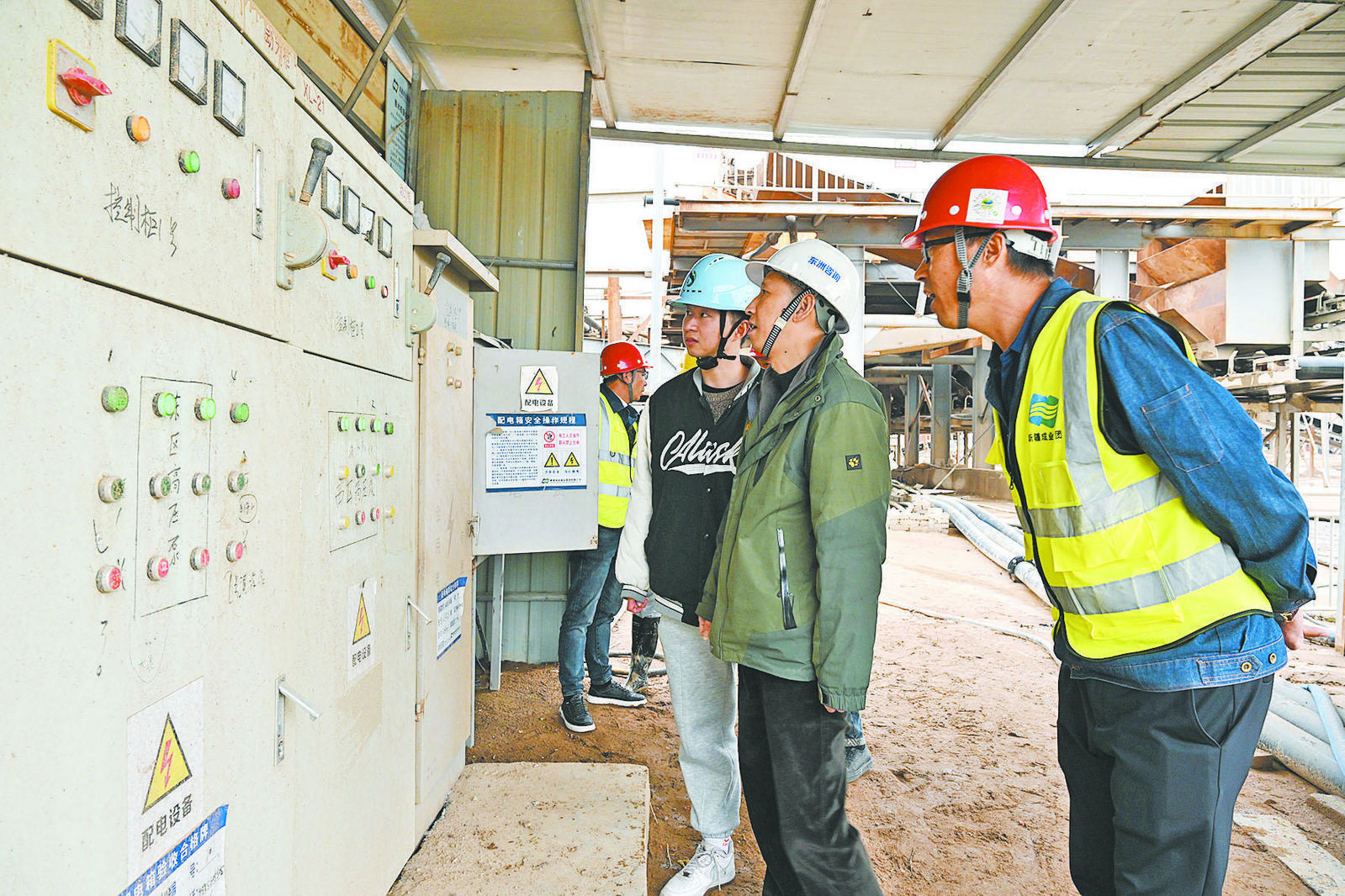 昨日,雙江水利樞紐三標段制沙設(shè)備區(qū),雙江湖集團安檢部門會同監(jiān)理等,分組現(xiàn)場檢查用電安全、消防設(shè)備配置等情況,防患于未然。