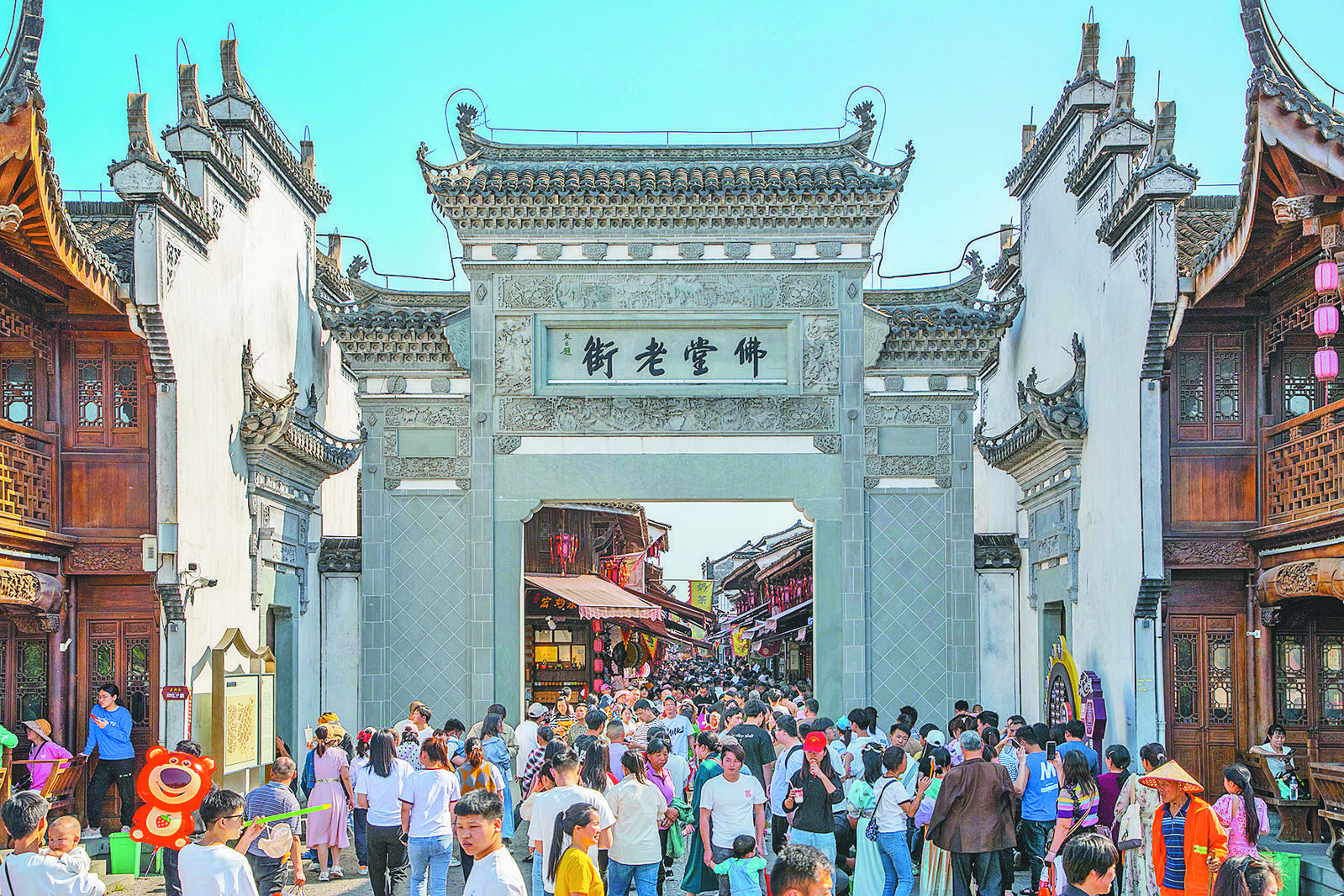 因佛而名,因水而商,因商而盛。 佛堂商脈歷史悠久,為浙江四大古鎮(zhèn)之一,享有“千年古鎮(zhèn)、清風(fēng)商埠、佛教圣地”的美譽(yù)。因江埠碼頭與金、蘭、徽、杭通衢通商,佛堂慢慢發(fā)展成市鎮(zhèn),并逐漸形成市基、老街。明清時(shí)期,佛堂老街已頗有規(guī)模,享有“小蘭溪”之稱。發(fā)達(dá)的商埠經(jīng)濟(jì),造就佛堂古鎮(zhèn)極其深厚的商業(yè)文化歷史底蘊(yùn),成為義烏商貿(mào)起源地之一。 歷經(jīng)幾百年滄桑,佛堂老街始終佇立在義烏江畔,見(jiàn)證著佛堂古鎮(zhèn)的發(fā)展。近年來(lái),隨著佛堂古鎮(zhèn)保護(hù)利用開(kāi)發(fā)工程實(shí)施及義烏雙江湖新區(qū)建設(shè)啟動(dòng),佛堂老街更是逐漸恢復(fù)人氣、迎來(lái)新生,成為義烏文旅發(fā)展的一張“金名片”。 店鋪林立 見(jiàn)證義烏商貿(mào)文化發(fā)展 佛堂老街,主要由直街、東街、西街和浮橋頭橫街、鹽埠頭、商會(huì)街構(gòu)成三縱三橫的老街格局。另有幾條巷、弄、里,有大成弄、金宅弄、新碼頭橫街、老市基橫街、上塘沿、長(zhǎng)新里、義和里、禮記等。 直街全長(zhǎng)近500米,是明、清、民國(guó)以來(lái)佛堂最繁華的商業(yè)街。與由北向南的義烏江水流逆向稱呼,江下游為上街,江上游為下街,內(nèi)含“招財(cái)進(jìn)寶,肥水不外流”的寓意!袄辖质前凑睁庺~(yú)的形狀建造。碼頭上來(lái)這個(gè)地方叫鰩魚(yú)口,進(jìn)去是一條主街,如同魚(yú)的脊背,兩條副街以及四五條橫街,就像一條條魚(yú)肋骨……”佛堂作協(xié)主席王春平的說(shuō)法則更為形象。 舊時(shí),商界大亨、街頭小販、初生牛犢、涉世老手盡在直街上求得一席之地,是經(jīng)商戶最集中的地段,主要商號(hào)有大通、大成、三星百貨、沈太和、沈協(xié)和、吳德興、信元樓、瑞祥泰、王錦盛山貨、張三茂順記田料、三益碗店、益和醬坊等。 東街從老市基口至新市基口包括大文頭,全長(zhǎng)480.8米,房屋主要用于倉(cāng)儲(chǔ)或居住。留軒小學(xué)、東南布廠、三萬(wàn)頭民居、吳棋記民居、張三茂民居、兆豐米廠、懋德堂、朱和順油車(chē)等都在東街地段。如今,留軒小學(xué)、吳棋記民居等地,依舊被義烏人所熟知。 吳棋記民居,民國(guó)時(shí)期佛堂商人吳茂棋民宅,曾是佛堂境內(nèi)最高樓,后為佛堂區(qū)政府辦公場(chǎng)所。上世紀(jì)30年代,吳茂棋率先在佛堂批發(fā)代銷進(jìn)口化肥、化工產(chǎn)品和日用洋品, 成為當(dāng)?shù)亍蔼?dú)涉洋貨”批發(fā)市場(chǎng)的經(jīng)銷商。 “吳茂棋13歲來(lái)佛堂學(xué)藝,最終成了大老板。”佛堂老街一經(jīng)營(yíng)戶陳老伯說(shuō)。如今,一撥撥來(lái)古鎮(zhèn)旅游的游客必到吳棋記民居打卡,站在吳棋記瞭望臺(tái)上俯瞰古鎮(zhèn)區(qū),回味當(dāng)年佛堂最高樓的別樣魅力。 留軒小學(xué),是義烏最早新建的一所現(xiàn)代學(xué)校。民國(guó)14年(1925年),佛堂商人丁定山在大文頭地段購(gòu)地3畝興建校舍,于民國(guó)17年(1928年)春呈報(bào)義烏縣教育局批準(zhǔn)!霸撔3闪ⅲ橇x烏百年現(xiàn)代教育史上的一個(gè)重大事件!崩辖志用耜愡\(yùn)泉說(shuō),留軒小學(xué)大門(mén)朝北,原為二進(jìn)二廂結(jié)構(gòu),第一進(jìn)已毀,如今尚存第二進(jìn),為四合二層青磚瓦房,保存基本完好。 西街又名石草田沿,全長(zhǎng)300多米,北起浮橋頭橫街,經(jīng)鹽埠頭、金宅弄、新碼頭、大成弄,再下接上塘沿、稠南小學(xué)、下塘沿。舊時(shí)為佛堂最早的魚(yú)市與菜市,沿街為兩層老式排門(mén)屋。有丁順昌、胡開(kāi)文墨莊、孫伯仁醫(yī)院、染布坊、醬油廠等。 商會(huì)街相交于上街,東西向,東起東街(共和巷),西止大成弄(新苗巷),因位于新市基的“紹興會(huì)館”而得名,全長(zhǎng)141.4米。歷史上,商會(huì)街店鋪主要有丁義興染布店、康樂(lè)醫(yī)院、敦厚當(dāng)?shù)、大同照相館、國(guó)光照相館、王順記宿店等。 佛堂照相館“前身”,便是大同照相館和國(guó)光照相館!胺鹛谜障囵^一直保持著傳統(tǒng)照相技藝,直到上世紀(jì)70年代末,還保留運(yùn)用日光攝影棚和日光暗房的傳統(tǒng)照相術(shù)技藝!绷x烏“傳統(tǒng)照相術(shù)”第四代傳承人金福根說(shuō)。 佛堂老街獨(dú)特的商業(yè)文化,讓很多居民耳濡目染,慢慢有了經(jīng)商頭腦。這些年,老街走出一批又一批善于思考、敢拼敢闖的佛堂商人。義烏小商品市場(chǎng)創(chuàng)業(yè)者代表之一——佛堂鎮(zhèn)竹園自然村人馮愛(ài)倩,就是從小在佛堂老街上長(zhǎng)大的。 “小時(shí)候佛堂很熱鬧,每天來(lái)來(lái)往往的商人很多。我從小就拎著籃子,幫母親到佛堂碼頭、老街上收衣服。很多做生意的本事,都是在老街上看會(huì)學(xué)會(huì)的。”在義烏收藏品市場(chǎng)店鋪里,馮愛(ài)倩笑著說(shuō)。 上世紀(jì)末,隨著經(jīng)濟(jì)社會(huì)快速發(fā)展,佛堂碼頭桅桿林立、泊舟如蟻的景象慢慢不見(jiàn)了蹤影。當(dāng)水運(yùn)不再是唯一通道時(shí),佛堂老街也一度蕭條。 主動(dòng)求變 走出文旅發(fā)展新路徑 5月27日,行走在佛堂老街,土布、竹編、梨膏糖……短短500米的佛堂老街直街,竟然有著20余項(xiàng)非遺項(xiàng)目,還有咖啡館、書(shū)吧等新業(yè)態(tài)。如今