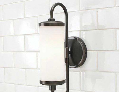 PART D:環(huán)柱型壁燈 同樣是柱形的燈罩設(shè)計(jì),處于實(shí)木浴室柜和浴室鏡裝點(diǎn)的空間里,這款用黃銅支架環(huán)繞的壁燈,就顯得充滿(mǎn)懷舊的氣息。 燈柱兩頭的黃銅支架,讓壁燈充滿(mǎn)復(fù)古的韻味,同時(shí)也顯得更具觀賞性。 參數(shù): 全部:5“寬x 7“深× 14.5 “高 燈罩:3.5 “直徑,8.5 “高 背板:5“直徑,1 “厚 燈泡:T10 重量:2.5磅 |