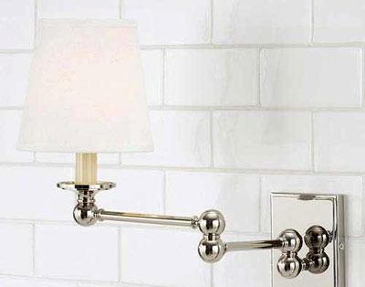 PART E:伸展型壁燈 這款大型的雙人臺盆柜裝點(diǎn)了雙人衛(wèi)浴的空間,讓甜蜜的小兩口可以一起洗漱。傳統(tǒng)的燈罩造型,讓衛(wèi)浴間顯得簡潔溫馨,更具生活氣息。 亞麻燈罩讓這款壁燈擁有更多自然的元素,與白色的空間相得益彰。可以伸展的支架,讓燈與鏡子間的距離更加靈活,裝飾性更強(qiáng)。 參數(shù): 全部:4“寬x 16.5“深× 8.5“高 臂:13.5 “長 背面板: 4“寬x 5“高 燈泡:60瓦;B型 |