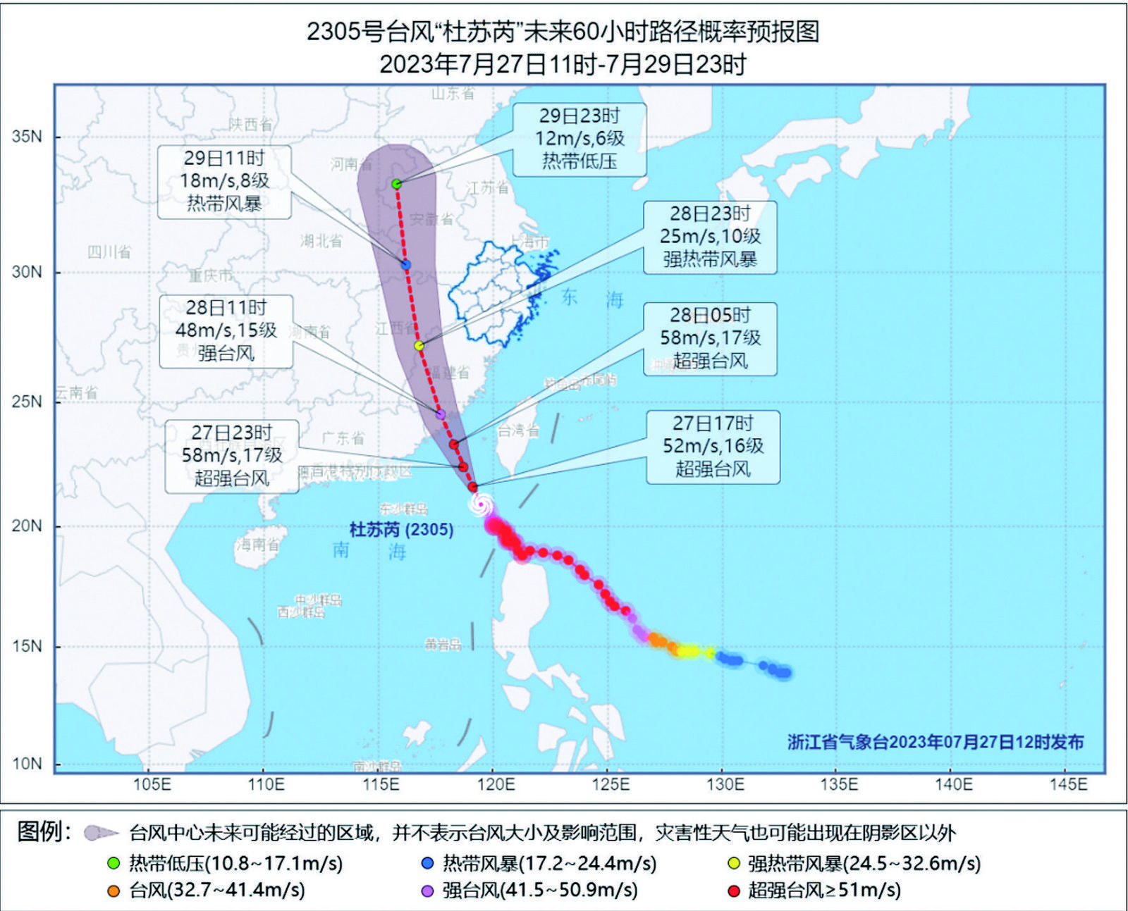 記者從氣象部門獲悉,昨日下午3時,今年第5號臺風(fēng)“杜蘇芮”(強(qiáng)臺風(fēng)級)中心位于東經(jīng)119.30°,北緯21.20°,風(fēng)速50米/秒,移速18公里/小時,氣壓940百帕,近中心最大風(fēng)力15級。預(yù)計“杜蘇芮”以每小時15公里的速度向北偏西方向移動,強(qiáng)度有所增強(qiáng)。 據(jù)市氣象臺工作人員介紹,臺風(fēng)“杜蘇芮”最大可能于今天早晨到上午,在福建晉江到閩粵交界沿海登陸(強(qiáng)臺風(fēng)級或超強(qiáng)臺風(fēng)級,45~52米/秒,14~16級)。受臺風(fēng)外圍環(huán)流影響,昨天夜里,我市出現(xiàn)風(fēng)雨天氣,雨量中等,局部地區(qū)大雨。今明兩天,臺風(fēng)“杜蘇芮”將繼續(xù)帶來風(fēng)雨影響。今天,陰到多云,有時有陣雨或雷雨,雨量中等,局部大雨;明天陰到多云,有時有陣雨或雷雨,雨量中等,陣風(fēng)4~6級。從氣溫來看,最高氣溫明顯下降,今天早晨最低溫度25~26℃,白天最高溫度28~29℃。 |