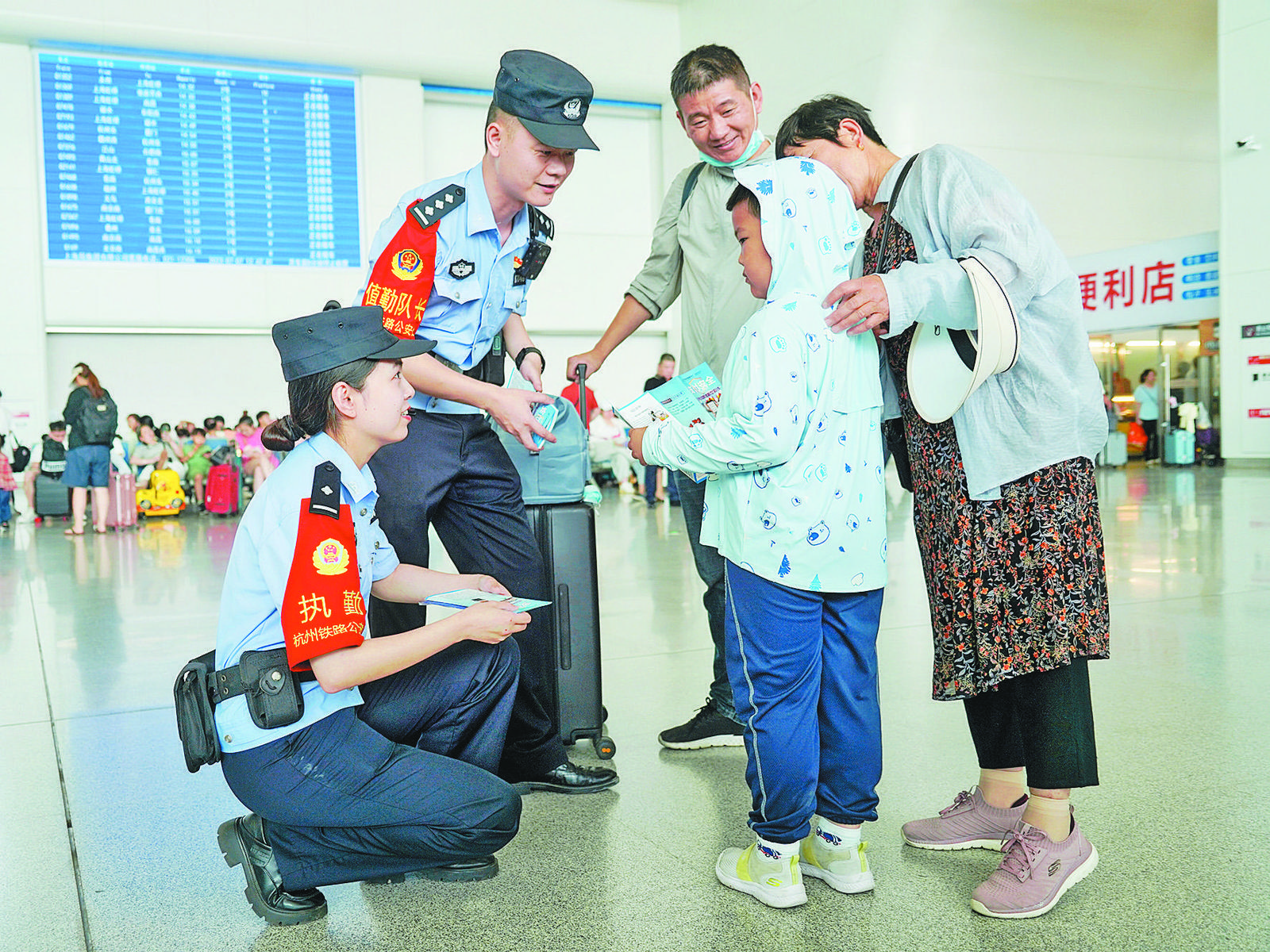 連日來,義烏鐵路警方統(tǒng)籌開展夏季治安整治專項行動,集中打擊整治站車霸座、猥褻、強討等違法犯罪活動,提升站車治安防控和群防群治能力,全力護航暑運安保,迎接亞運召開。 據(jù)了解,義烏鐵路警方緊密結(jié)合實際情況,“定人、定責、定目標”。通過加強巡邏防控、嚴密防范重點區(qū)域、嚴格查處違法犯罪行為等措施,全面提升車站及周邊地區(qū)的治安秩序。 為了提高廣大旅客的防范意識,義烏鐵路警方聯(lián)合浙江東邦律師事務所、鐵路義烏站及站區(qū)相關(guān)部門,深入開展了反詐、鐵路安全、霸座、乞討、猥褻宣傳活動。通過舉辦講座、發(fā)放宣傳資料、設(shè)置宣傳展板等形式,向旅客普及法律知識,提高旅客自我保護意識。同時,加大對霸座、乞討、猥褻等違法犯罪行為的打擊力度,對發(fā)現(xiàn)的違法行為依法進行查處。 同時,義烏鐵路警方緊緊圍繞“暑運安保”這一主題,全面提升安保措施,確保廣大旅客的出行安全。加強線路巡查,及時發(fā)現(xiàn)并排除安全隱患;加強對車站工作人員的培訓和管理,提高其應對突發(fā)事件的能力;嚴格落實各項治安管理制度,確保旅客的人身安全和合法權(quán)益得到有效保障。 |