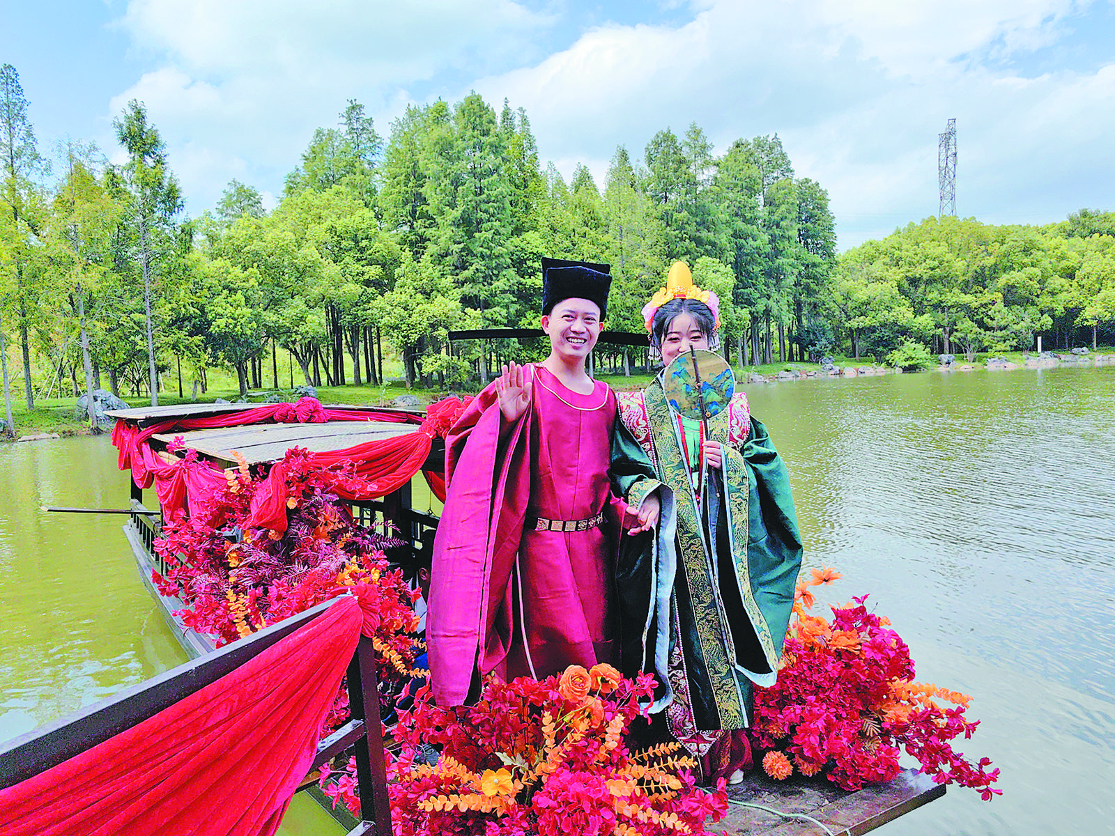 “正至朔望,吉日良辰,良緣夙締,天合之喜。親迎已備,新娘出閣……”8月19日,在義烏植物園,一場盛大的宋韻水上婚禮吸引人們駐足觀禮,兩岸游客掌聲不絕,整個(gè)植物園洋溢著喜慶的氣氛。 9點(diǎn)30分許,在植物園的湖面,遠(yuǎn)遠(yuǎn)駛來兩艘“宋韻迎親”的喜船,6對(duì)新郎新娘穿戴宋代婚服分別站在兩船的船頭,一場夢回千年的沉浸式宋韻水上婚禮序幕就此拉開……河水緩緩流淌,水波溫柔,陽光正好,一如此刻船上新人的心情。 新郎踏喜船而來,與新娘共挽牽巾,待喜船緩緩靠岸,過火盆、跨馬鞍,登臺(tái)舉行集體頒證儀式,相繼完成卻扇禮、拜堂禮、合巹禮等,現(xiàn)場氣氛典雅莊重,使人恍若重回雅宋,一眼望盡千年變幻。為了持續(xù)推進(jìn)“四大雙千”活動(dòng)走深走實(shí),踐行“浙風(fēng)有禮”中的“儀有禮”,著力打造“水上婚禮”文化新典范,此次集體婚禮在原有習(xí)俗基礎(chǔ)上去繁從簡,邀請(qǐng)新人代表宣讀《婚事新辦倡議書》,以營造健康文明、簡約適度的婚俗文化氛圍。 “以前在杭州看到過水上婚禮,形式很獨(dú)特,隆重而美好,看到義烏首屆水上婚禮正在招募新人的新聞,我們馬上報(bào)名了,非常感謝主辦方為我們打造了一場如此盛大的婚禮!卑不占氯宋合壬嬖V記者,自己的妻子非常熱愛傳統(tǒng)文化,在他們心中,宋韻水上婚禮不僅僅是一場儀式,更是一種情感的傳遞和文化的延續(xù)。 據(jù)了解,首屆水上婚禮由市民政局、福田街道、城投集團(tuán)主辦,以“宋韻七夕緣 情定幸福田”為主題,通過出閣、梳妝、登船、親迎、禮拜五幕的演繹,打造一場具有義烏特色的宋韻水上婚禮。 當(dāng)天,市民政局、城投集團(tuán)共同為植物園戶外結(jié)婚登記頒證基地揭牌,啟動(dòng)七夕婚俗主題活動(dòng)。城投集團(tuán)相關(guān)負(fù)責(zé)人表示,接下來將不遺余力地打造一個(gè)浪漫、溫馨的環(huán)境,為新人結(jié)婚登記和舉辦婚禮提供優(yōu)質(zhì)、便捷的服務(wù),讓每對(duì)新人都能在植物園留下美好回憶,品味愛情的甜美,收獲幸福。 |