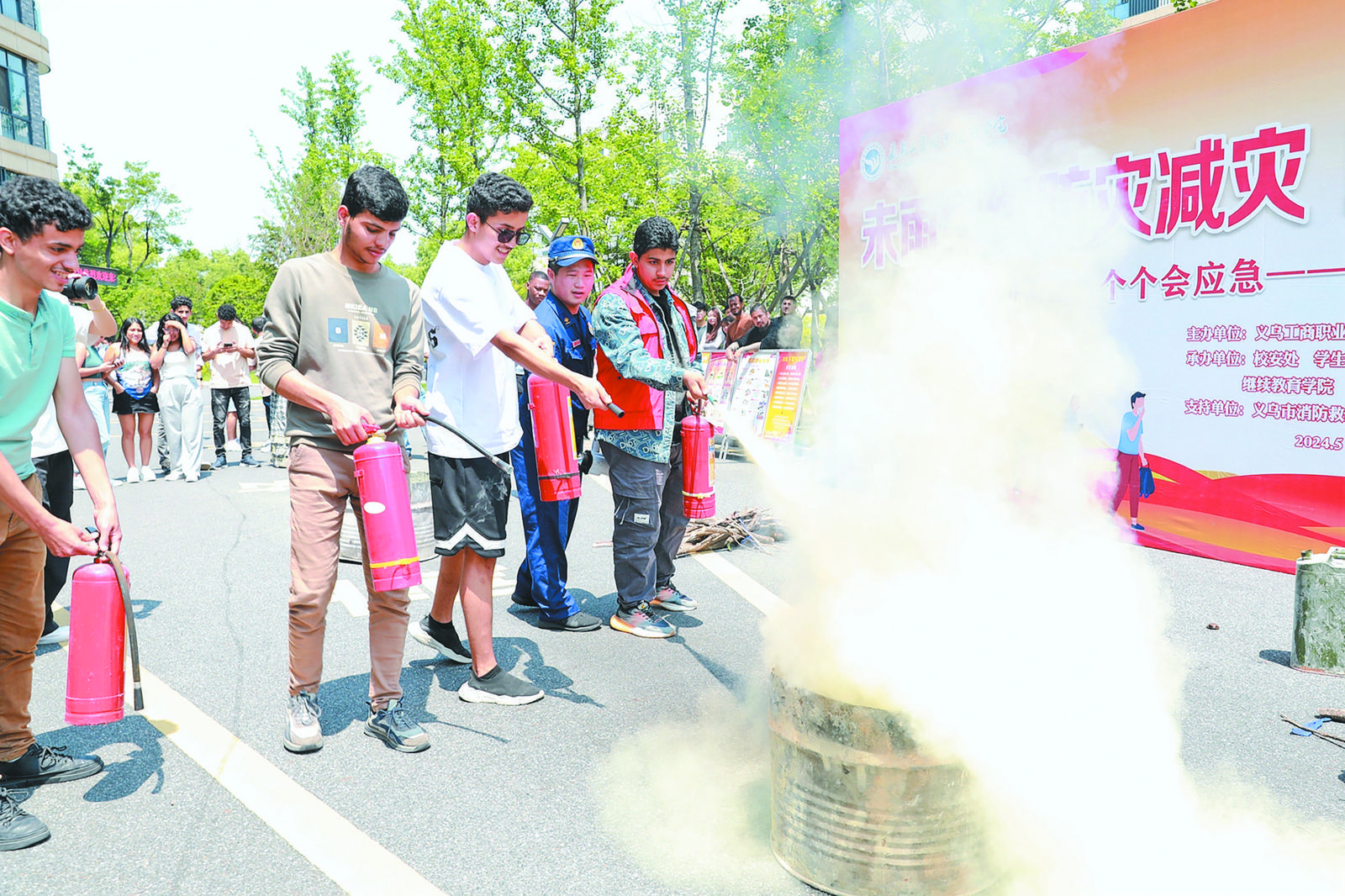5月10日,市消防救援支隊(duì)與義烏工商職院聯(lián)合開(kāi)展火災(zāi)疏散逃生演練暨防災(zāi)減災(zāi)科普宣傳活動(dòng)。300余名中外師生齊學(xué)防災(zāi)減災(zāi)和消防知識(shí),進(jìn)一步提升防災(zāi)避險(xiǎn)能力,營(yíng)造了“人人講安全、個(gè)個(gè)會(huì)應(yīng)急”的濃厚氛圍。 演練模擬義烏工商職院香樟一號(hào)樓4層由于電線老化短路突發(fā)火情,火勢(shì)迅速蔓延,現(xiàn)場(chǎng)濃煙滾滾。學(xué)校立即啟動(dòng)火災(zāi)應(yīng)急預(yù)案,并撥打119報(bào)警。各應(yīng)急小組迅速響應(yīng),組織學(xué)生向安全出口有序撤離。 演練結(jié)束后,還組織開(kāi)展了油盆滅火實(shí)操訓(xùn)練。 |